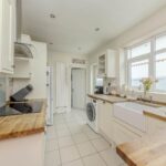 The kitchen is well-equipped with modern appliances and ample storage space, making meal preparation a breeze. Upstairs, you will find three bedrooms, all of which are bright and airy. The bathroom is sleek and stylish, featuring a bath and shower combination.