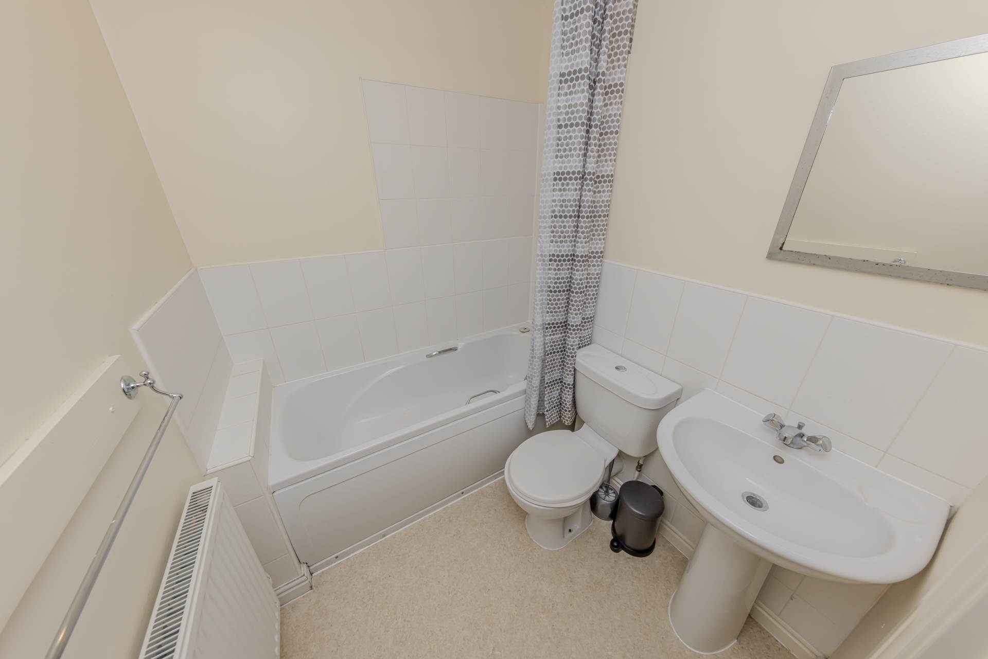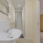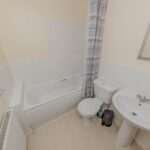The apartment features two well-proportioned bedrooms, with the master bedroom benefiting from the added luxury of an ensuite shower room and WC, offering privacy and convenience. The second bedroom is equally spacious, suitable for use as a guest room, home office, or nursery. A separate family bathroom completes the accommodation, fitted with modern sanitary ware and a bath with overhead shower.