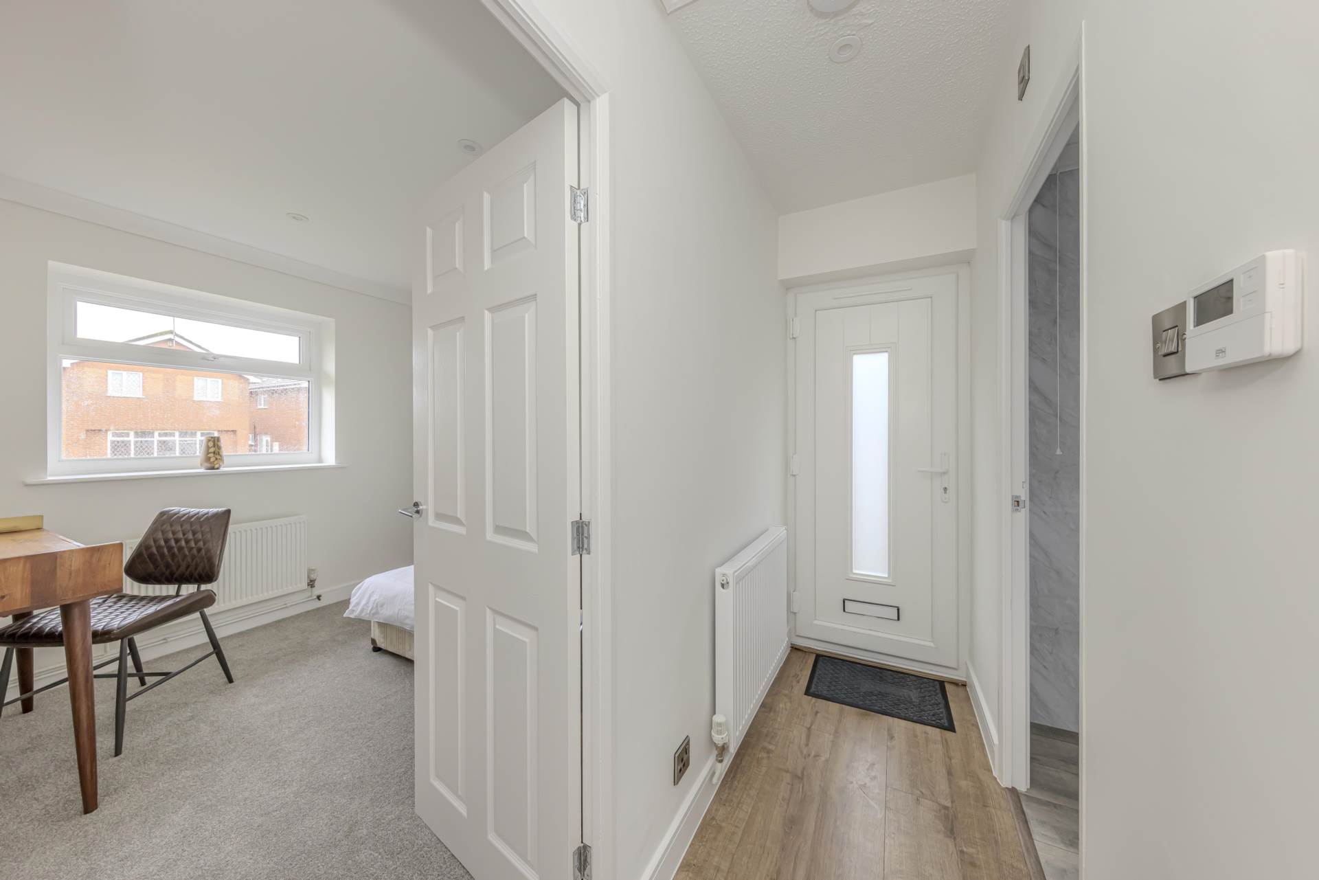 Upon entering, you are welcomed into a bright and airy reception room, perfect for relaxing or entertaining guests. The room benefits from ample natural light thanks to the double-glazed windows, creating a warm and inviting atmosphere throughout the day. The layout is versatile, allowing for a variety of furniture arrangements to suit your lifestyle.