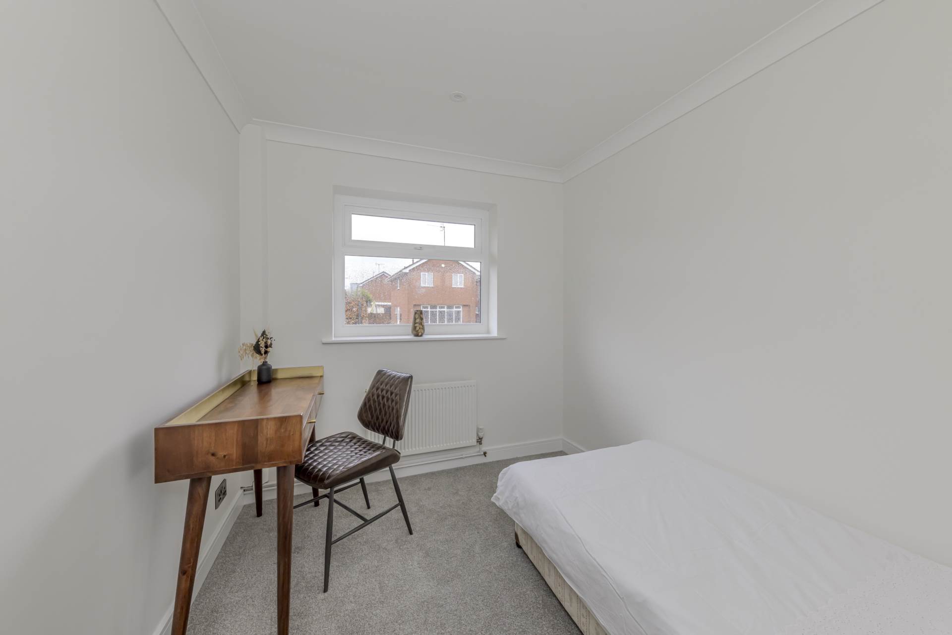 This bungalow features two good-sized bedrooms, both of which are neutrally decorated and benefit from double glazing, ensuring a quiet and comfortable environment for rest. The bedrooms are well-proportioned, offering plenty of space for wardrobes and additional furniture.