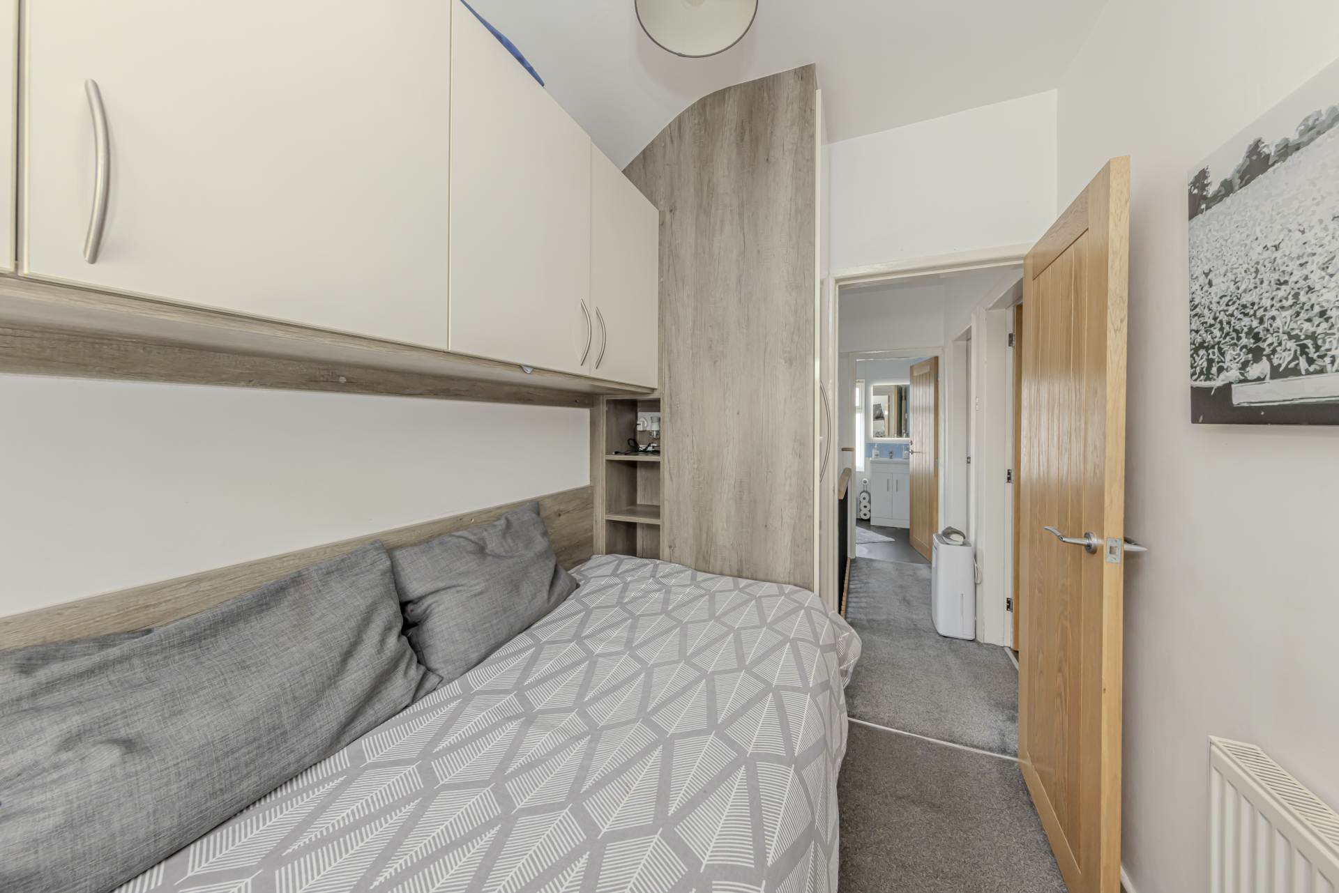 Outside, the rear garden is designed for ease of maintenance, predominantly paved to provide a low upkeep outdoor space. This area is perfect for alfresco dining, barbecues, or simply enjoying some fresh air without the hassle of extensive gardening. To the front, there is parking available for two vehicles, a valuable feature in this sought-after area.