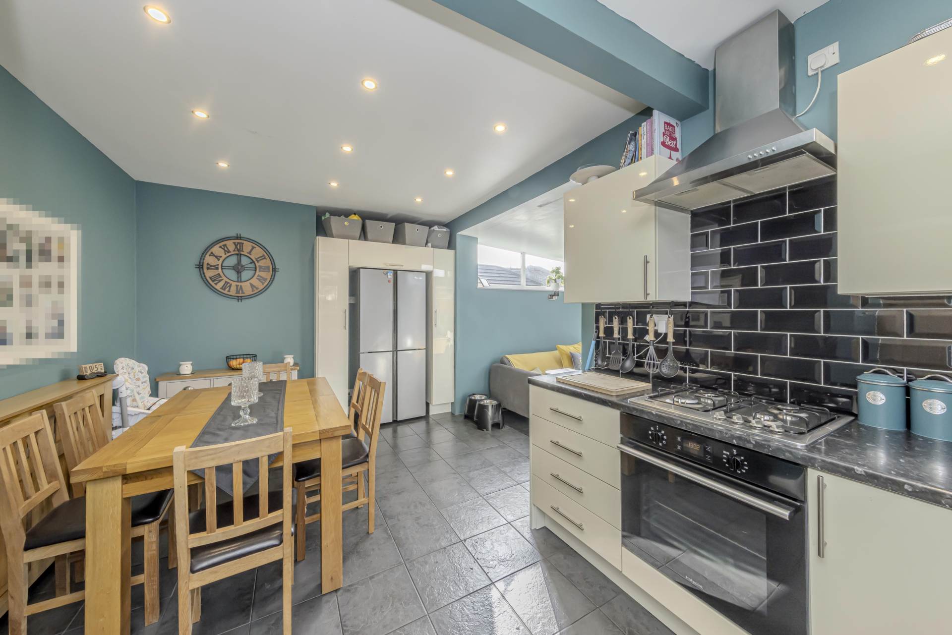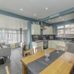 Upon entering, you are welcomed into small hallway and a spacious reception room, bathed in natural light from the double-glazed windows, creating a warm and inviting atmosphere. The room provides ample space for relaxing or entertaining guests. Adjacent to this is a second reception area, which seamlessly flows as an open-plan kitchen diner. This versatile space is perfect for family meals and social gatherings, featuring a well-equipped kitchen with plenty of storage and work surfaces, allowing for culinary creativity. The dining area comfortably accommodates a table for six, making it an ideal spot for both everyday dining and special occasions.