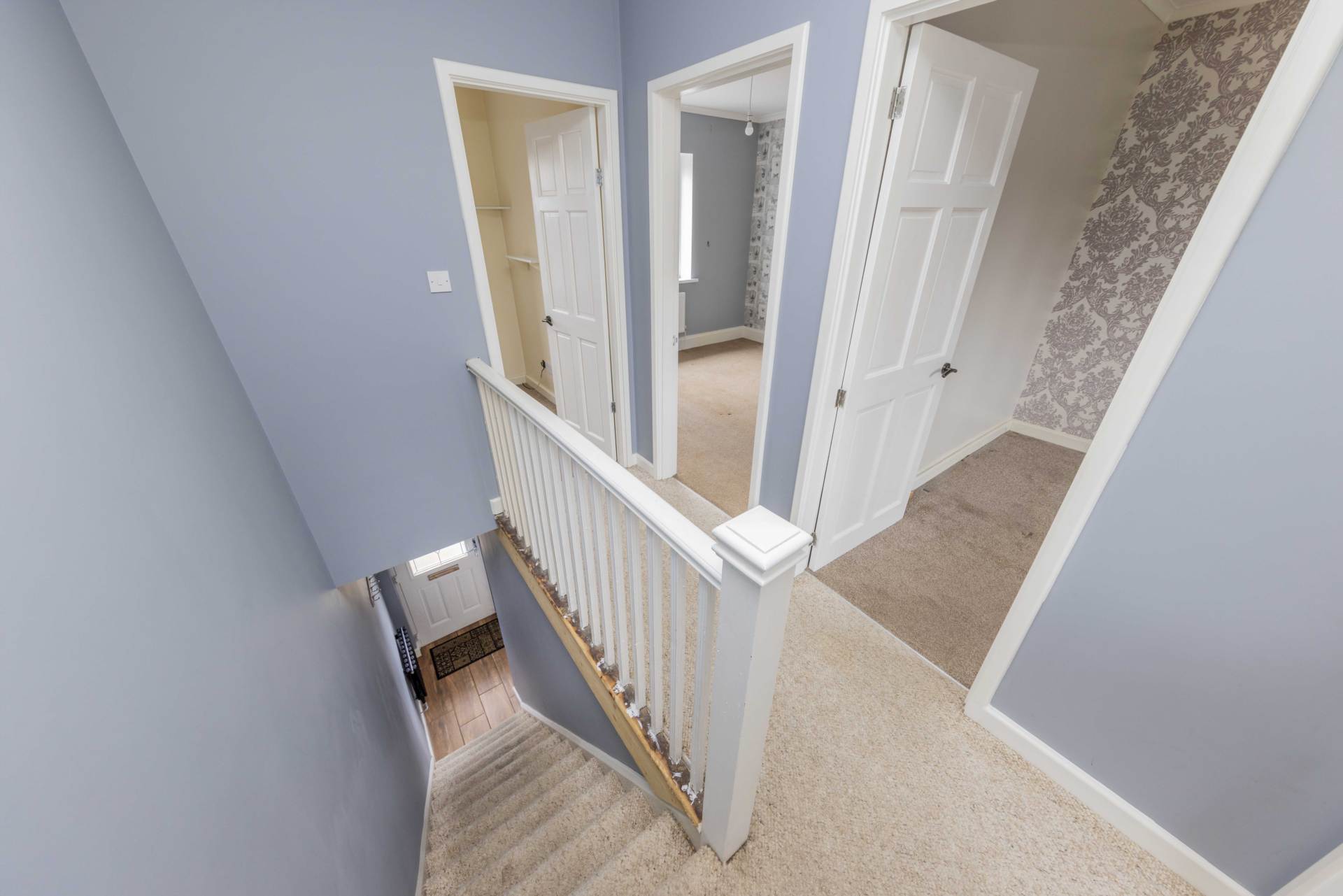 Upstairs, the property features three well-proportioned bedrooms, each benefiting from double glazing and gas central heating to ensure comfort throughout the year. The bedrooms offer ample space for wardrobes and additional furniture, making them adaptable to suit your lifestyle, whether as restful sleeping quarters, a home office, or a hobby room. The family bathroom is conveniently located on the first floor and includes a bath with shower over, a wash basin, and WC, finished in a clean and contemporary style.