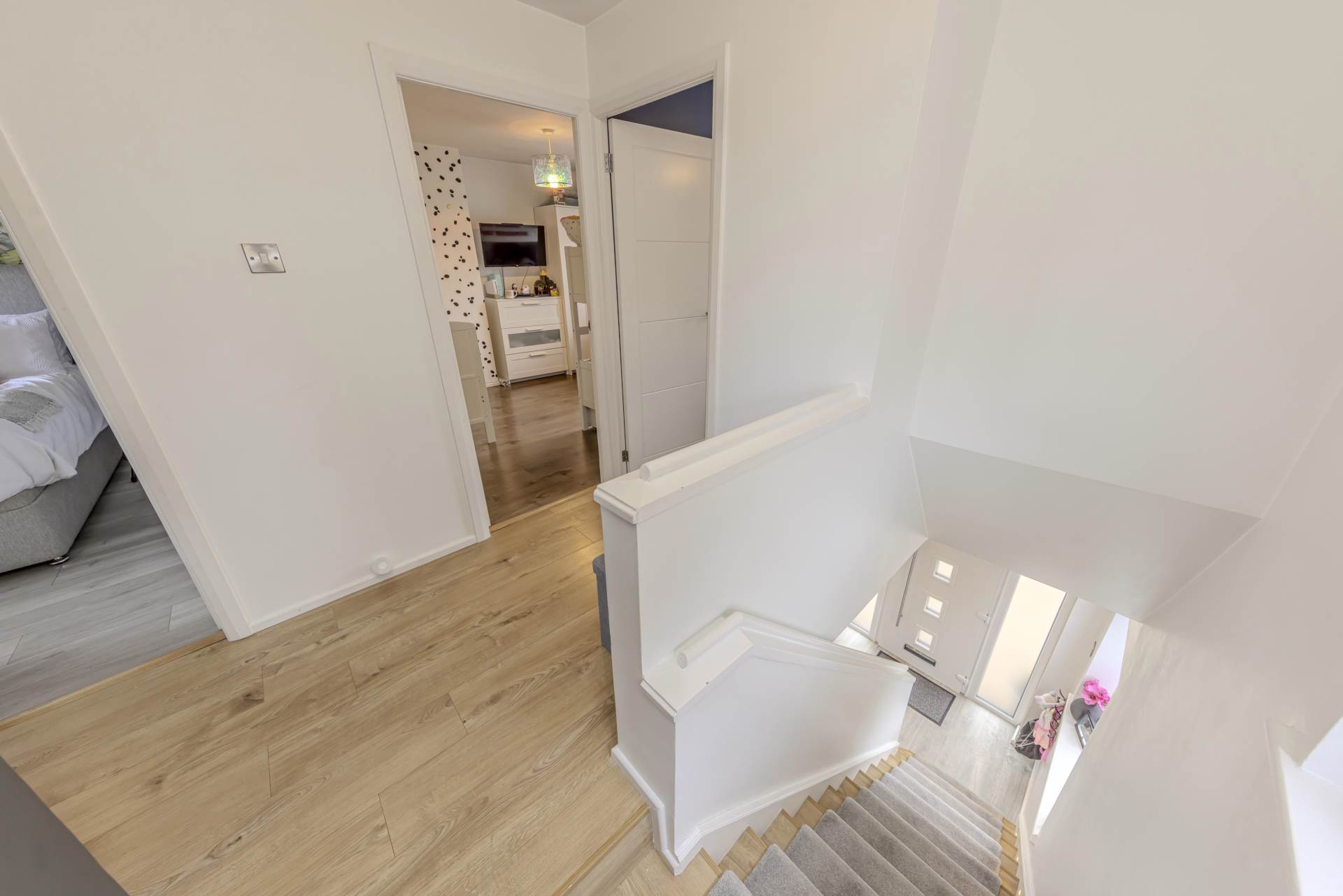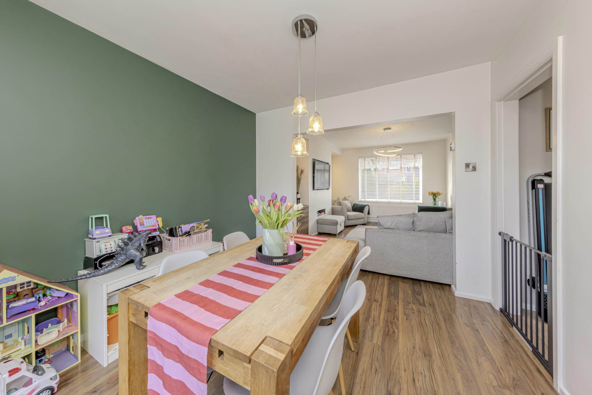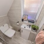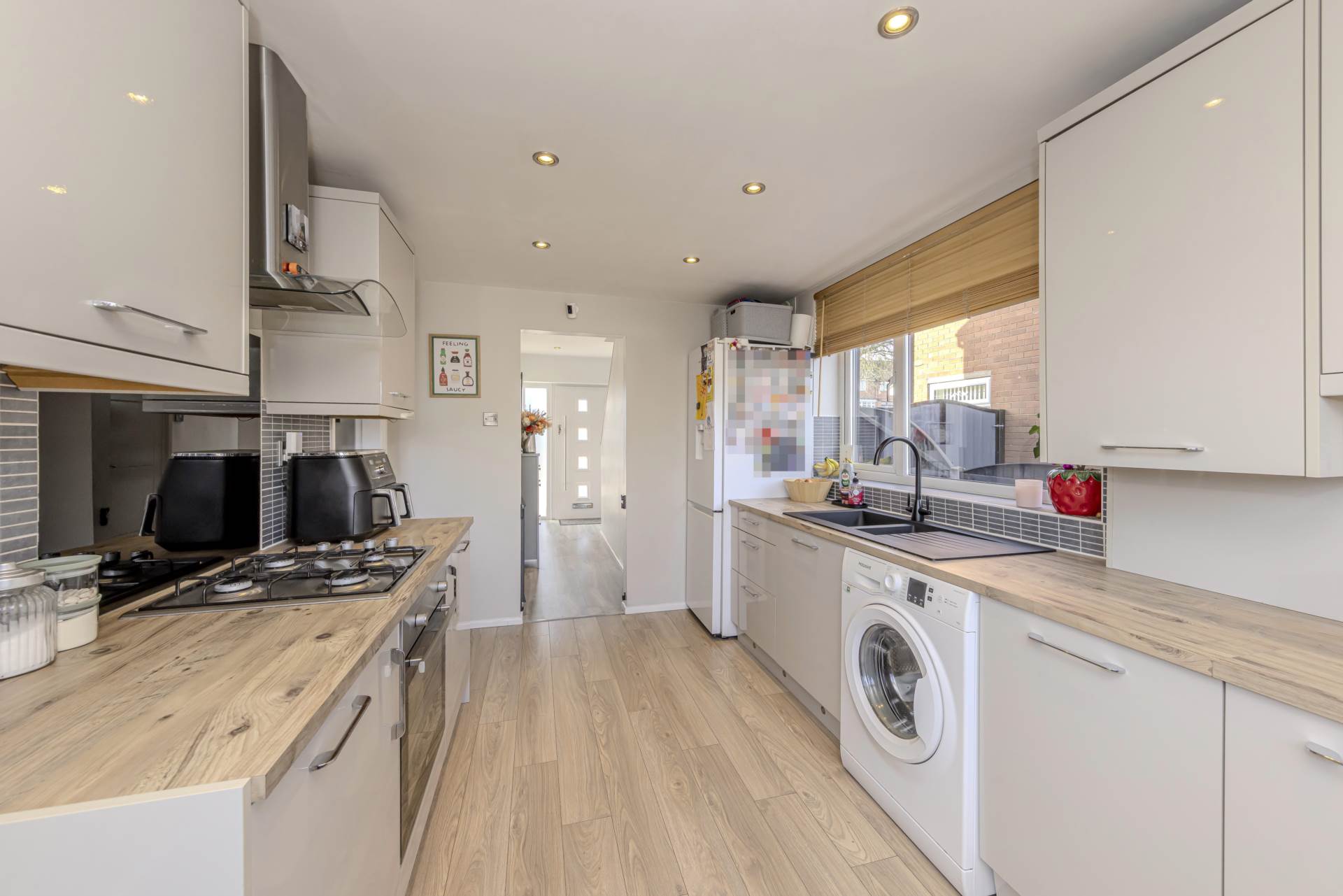 The modern kitchen has been thoughtfully designed with contemporary fittings and ample work surfaces, making it a practical and inviting space for cooking and entertaining. Adjacent to the kitchen, you will find a convenient downstairs toilet, adding to the functionality of the ground floor.