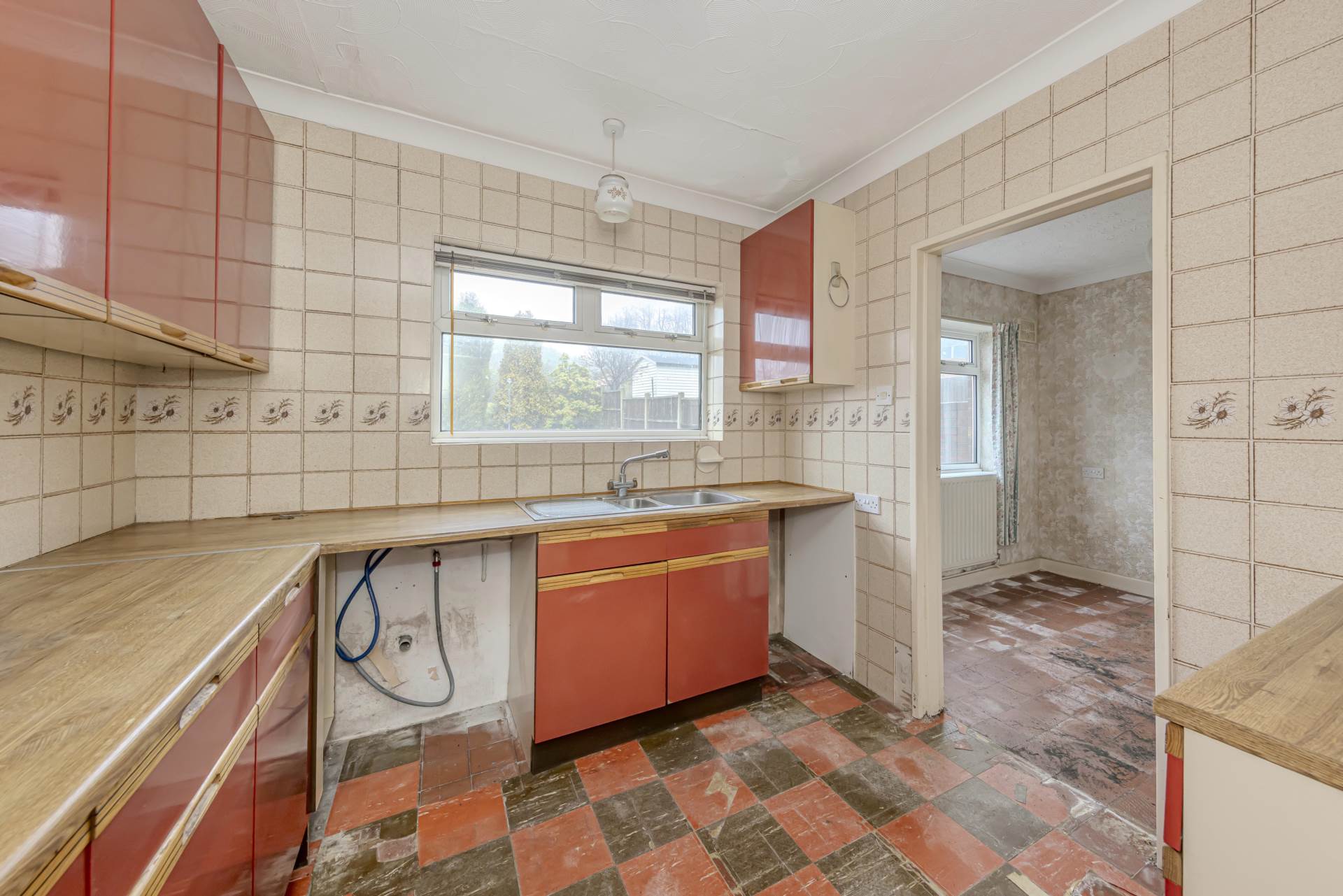 The property comprises two bedrooms, providing comfortable sleeping accommodation suitable for a small family, first-time buyers, or those looking to downsize. The bathroom is conveniently located to serve both bedrooms and the rest of the house. There are two reception rooms, offering versatile living space that could be adapted to suit a variety of needs, whether as a formal lounge and dining room or a lounge and home office. The kitchen, while in need of updating, provides a practical layout with access to the large rear garden.