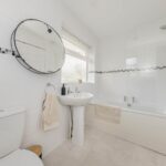 Upstairs, the property boasts three good-sized bedrooms, each offering comfortable accommodation with plenty of natural light. These rooms provide flexibility for a growing family, home office, or guest space. The bathroom is well-appointed with a modern suite, including a bath with shower over, wash basin, and WC, finished in neutral tones for a fresh and clean feel.