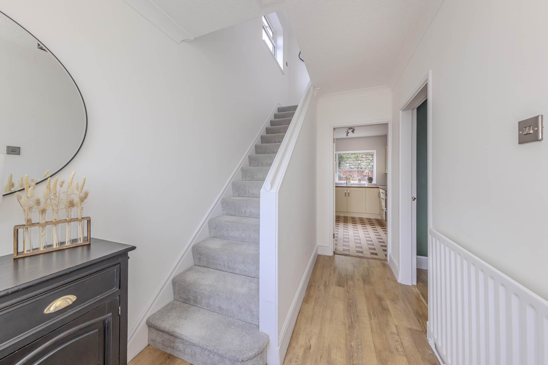 Step inside to discover a spacious and inviting reception room, flooded with natural light from the large front-facing window. This versatile space is perfect for relaxing with family, entertaining guests, or creating a cosy snug area. The neutral décor and well-proportioned layout allow for easy personalisation to suit your style.