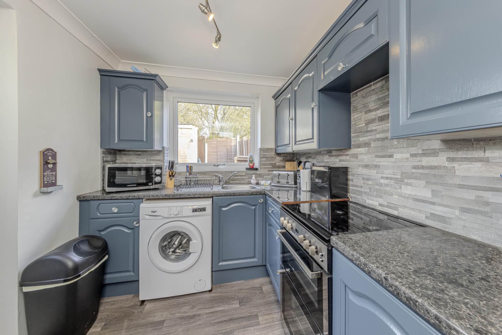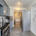 The kitchen, fitted with practical units and ample work surfaces, provides a functional space for meal preparation. From here, access to the rear garden is straightforward, allowing for easy indoor-outdoor living during warmer months. The garden itself is a lovely feature of the property, offering a private and secure outdoor space with a well-maintained lawn and patio area, perfect for alfresco dining or simply unwinding after a busy day.
