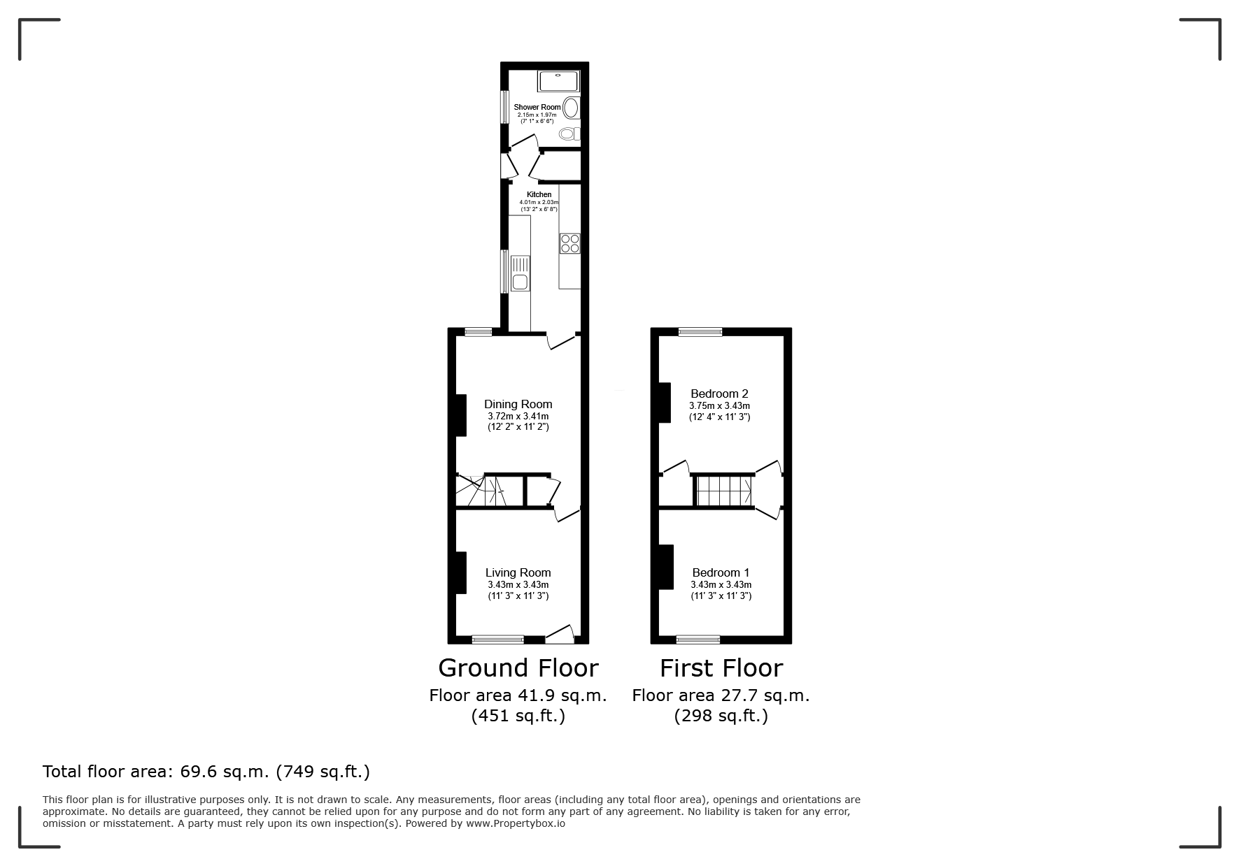 The ground floor bathroom is a practical feature, fitted with contemporary sanitary ware and a shower over the bath, offering both functionality and style. Upstairs, the two bedrooms are generously size.The property`s double glazing and gas central heating system contribute to energy efficiency and a cosy atmosphere, no matter the season.