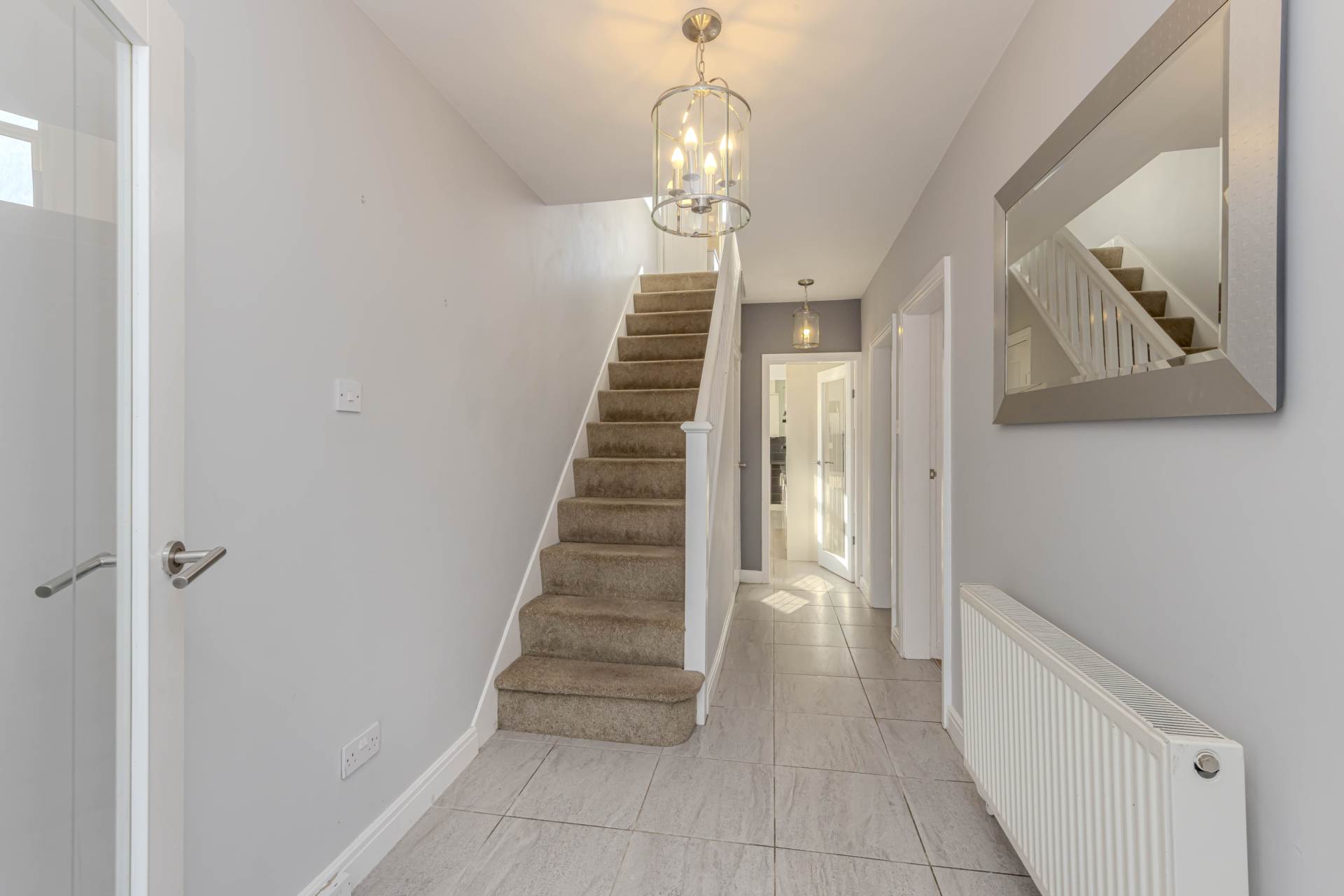 Upstairs, you will find three well-appointed bedrooms, each offering a peaceful retreat at the end of the day. The family bathroom is stylishly designed and includes a bath, shower, washbasin, and WC.