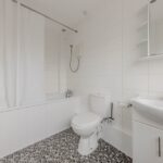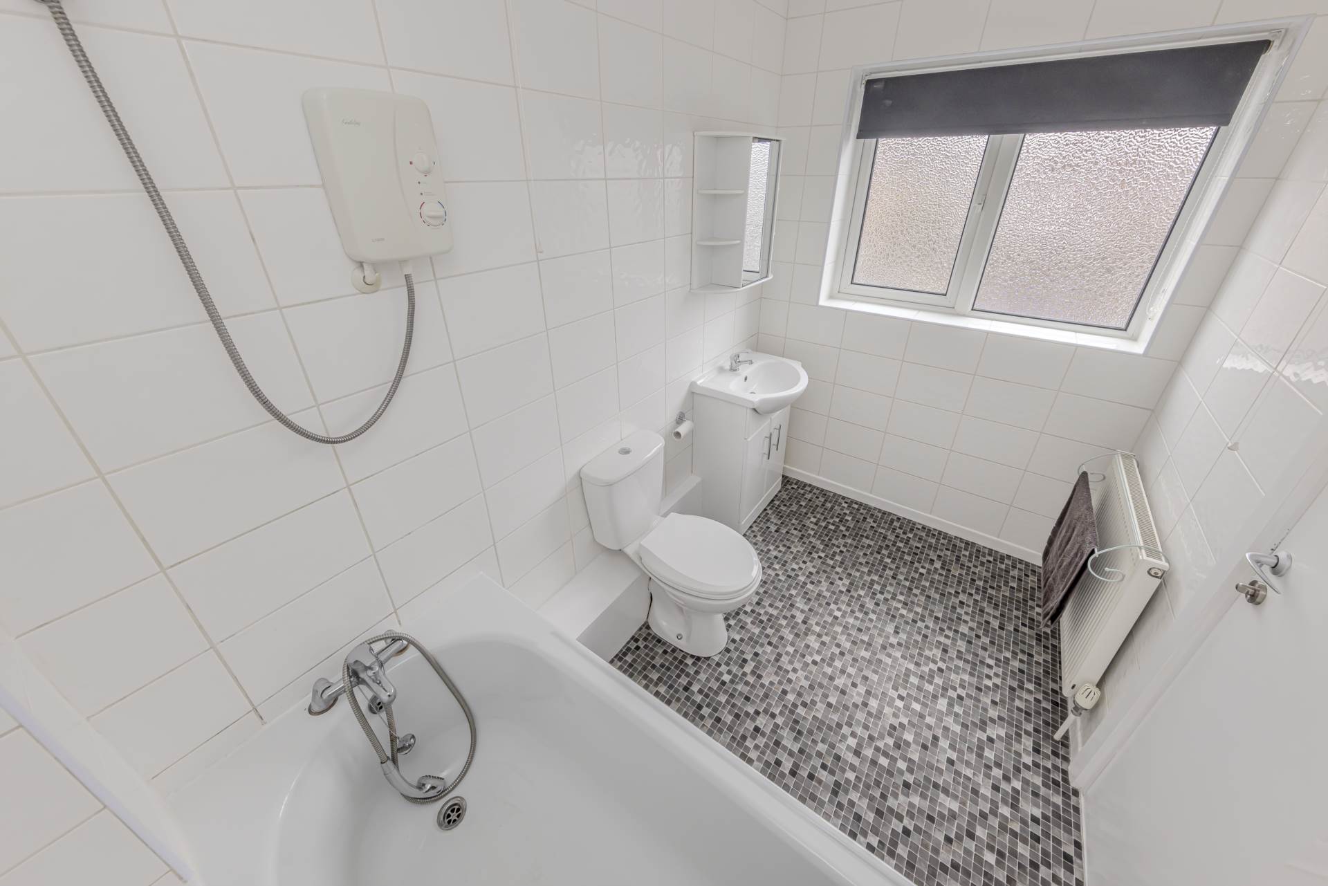 The property boasts two double bedrooms, each offering generous space and comfort. These rooms are perfect for a growing family, guests, or even a home office. The bathroom is conveniently located and features a white suite, including a bath with shower over, wash basin, and WC, all finished to a good standard.
