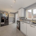 Upon entering, you are greeted by a bright and airy reception room, which provides a cosy yet spacious environment perfect for relaxing or entertaining guests. The neutral décor and large window allow natural light to flood the space, creating a warm and inviting atmosphere. Adjacent to the reception room is a contemporary kitchen, thoughtfully designed with modern fittings and fixtures. It features ample storage, sleek work surfaces, and integrated appliances, making it a pleasure to prepare meals and entertain family or friends.
