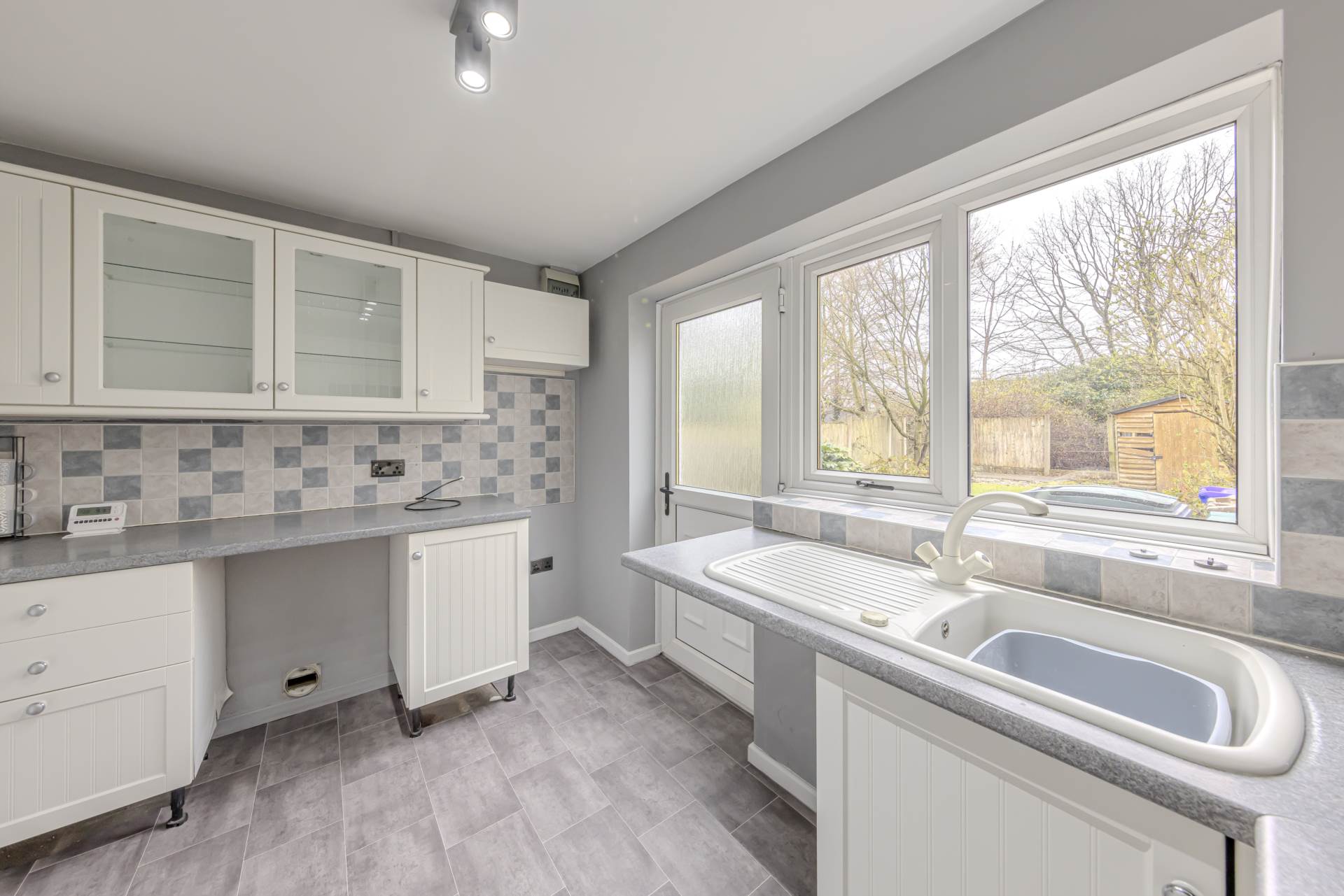 The kitchen offers a range of fitted units with plenty of work surface space, perfect for preparing meals. There is room for essential appliances and a cosy breakfast area if desired. From here, you can access the rear garden, which is a delightful outdoor space, ideal for enjoying the sunshine, gardening, or alfresco dining.