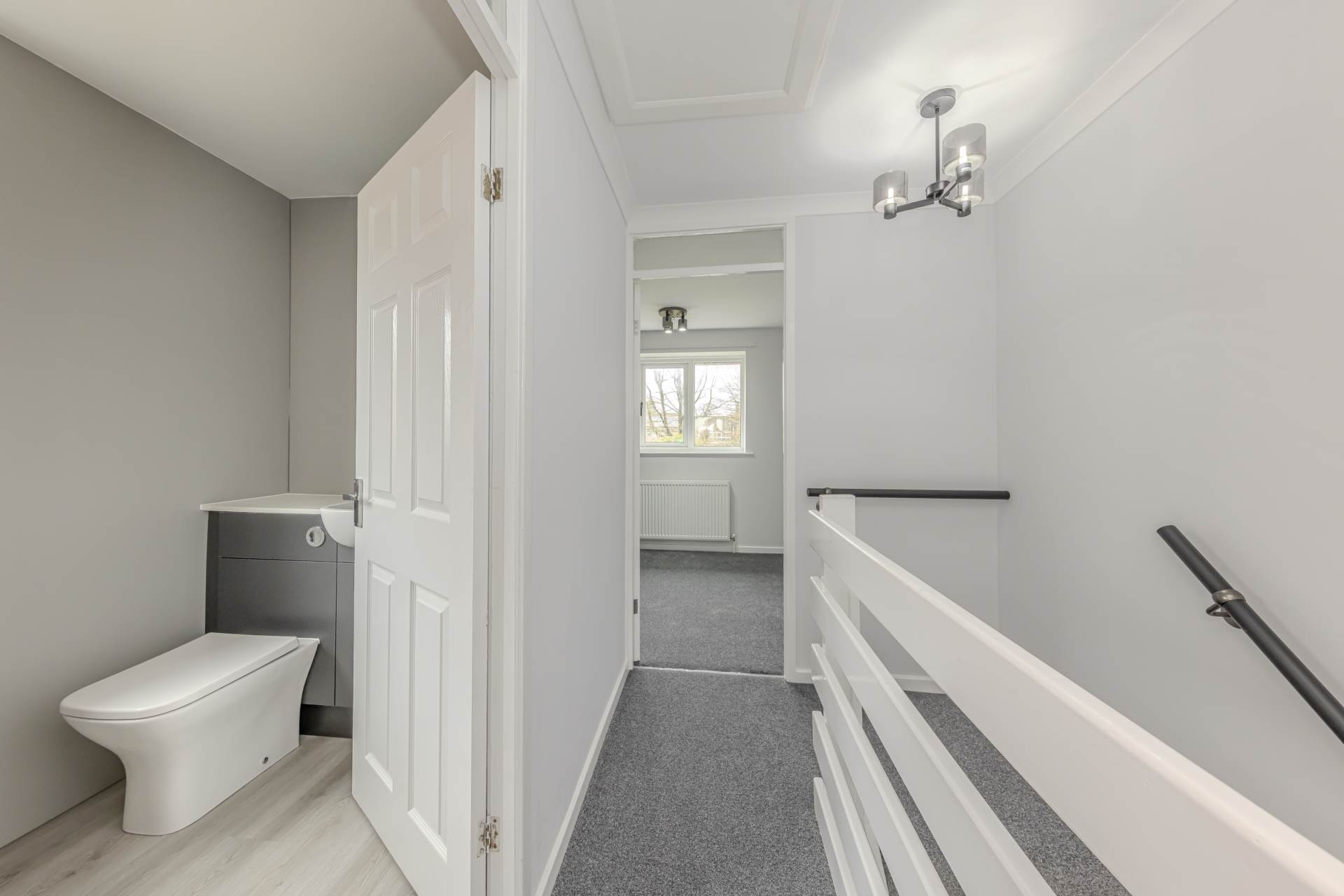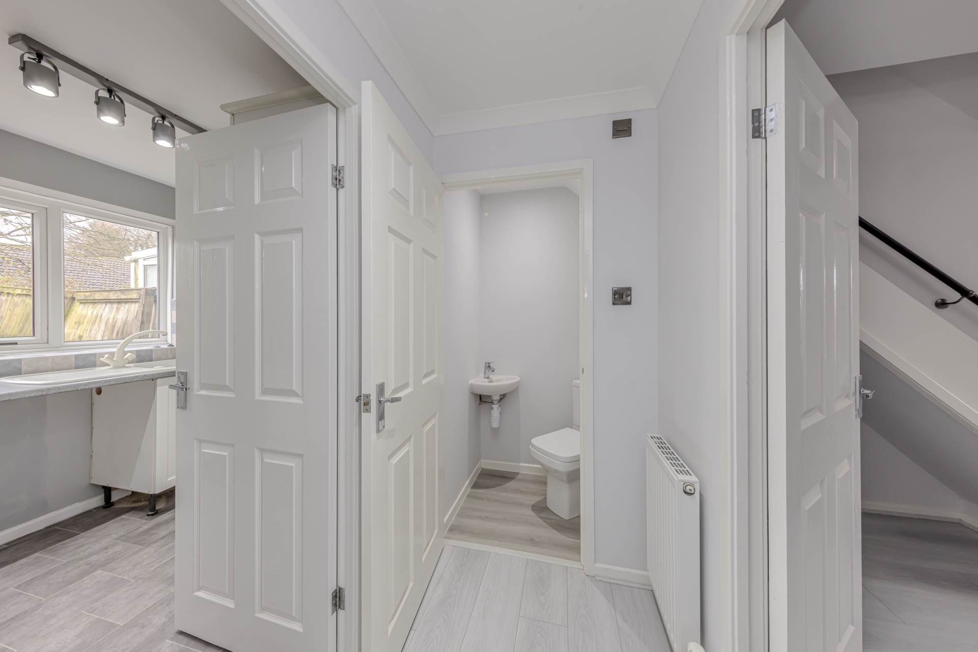 Upon entering, you are welcomed into a bright and airy entrance hall, which provides access to a handy downstairs w/c a practical addition for guests and busy mornings. The spacious reception room benefits from ample natural light through double-glazed windows, creating a warm and inviting atmosphere ideal for relaxing or entertaining. The neutral décor and modern finishes throughout ensure a fresh and stylish feel.