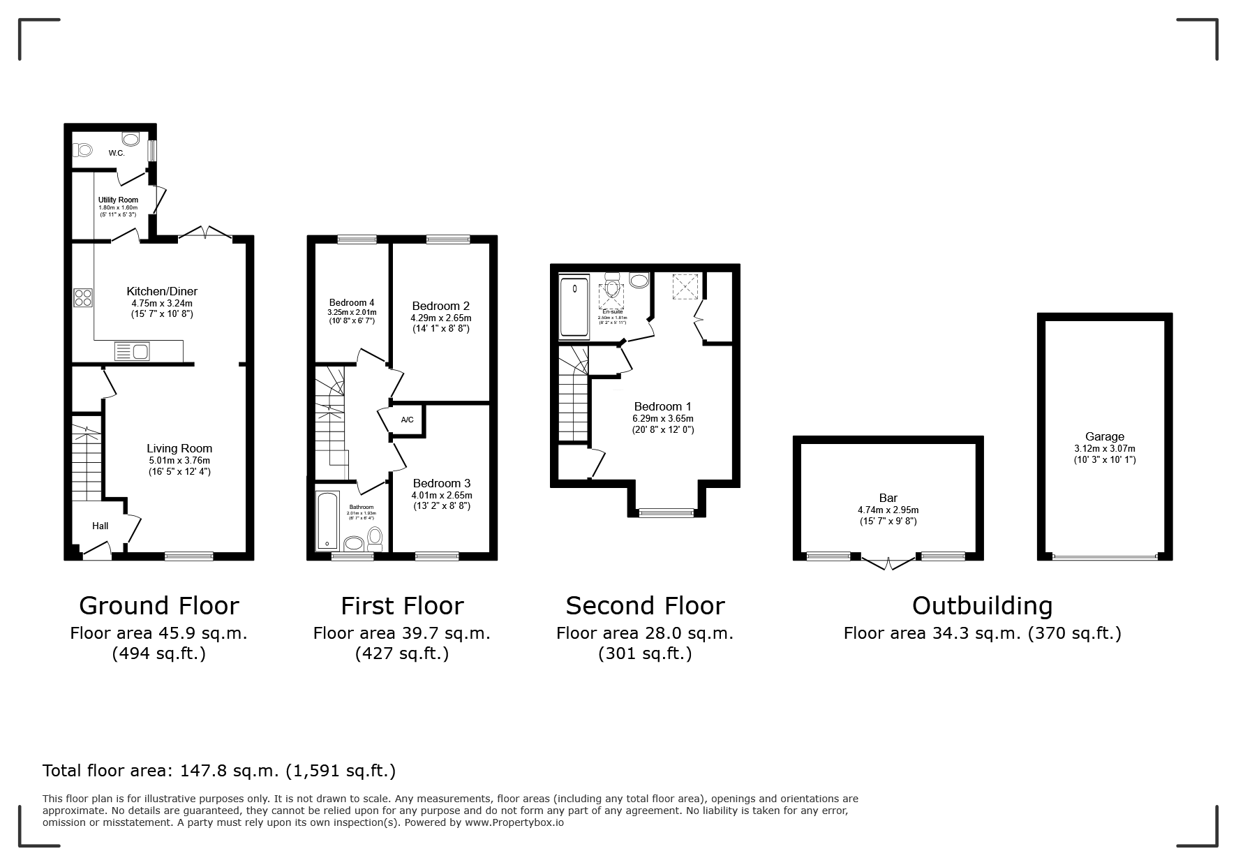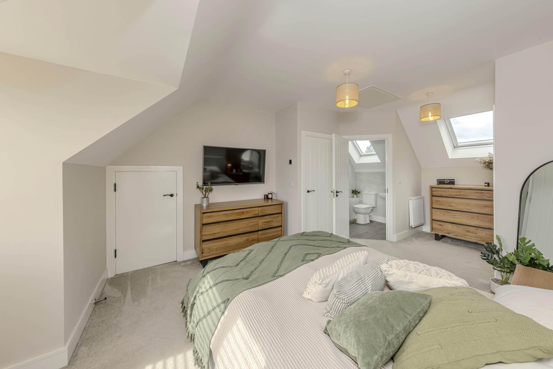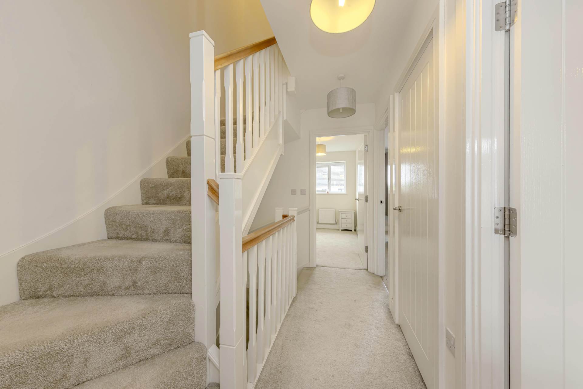 The ground floor also features a convenient utility room and a downstairs WC, adding to the practicality of the home. Moving up to the first floor, you will find three well-appointed bedrooms and a stylish bathroom. The second floor is dedicated to the master bedroom, complete with an en-suite bathroom, providing a private sanctuary for the homeowners.