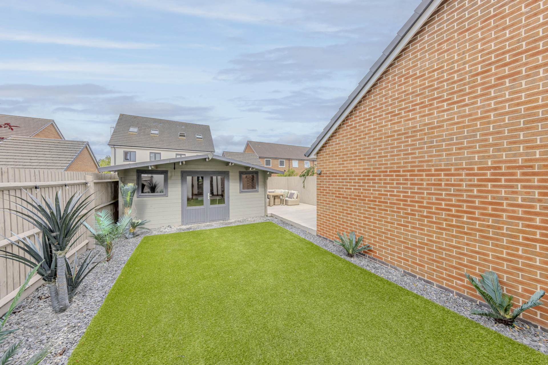 Outside, the property boasts a beautifully landscaped garden with artificial grass, perfect for enjoying the outdoors without the hassle of maintenance. A summer house adds a touch of luxury to the garden, offering a tranquil space to relax and unwind.
