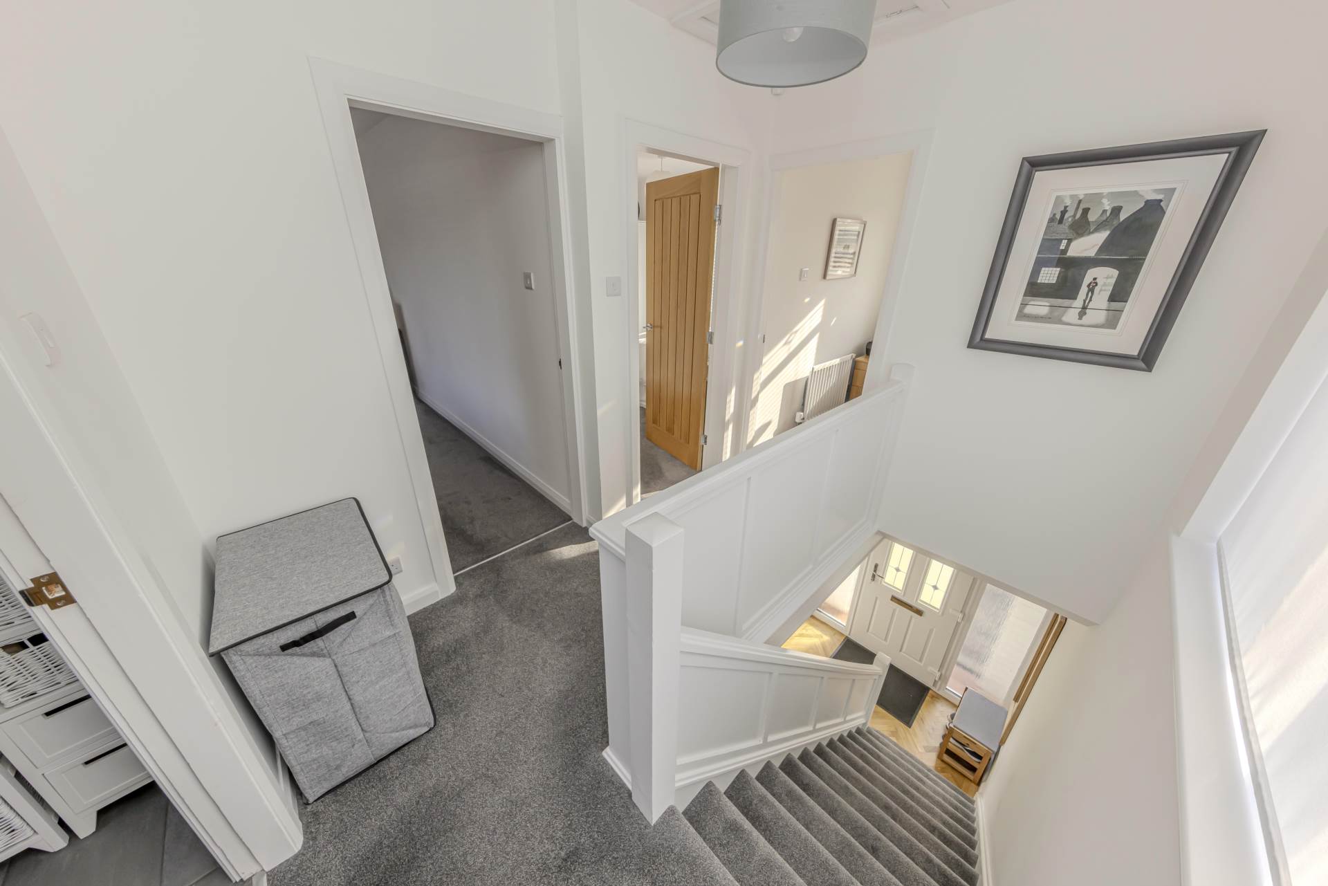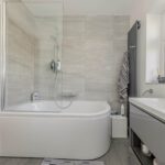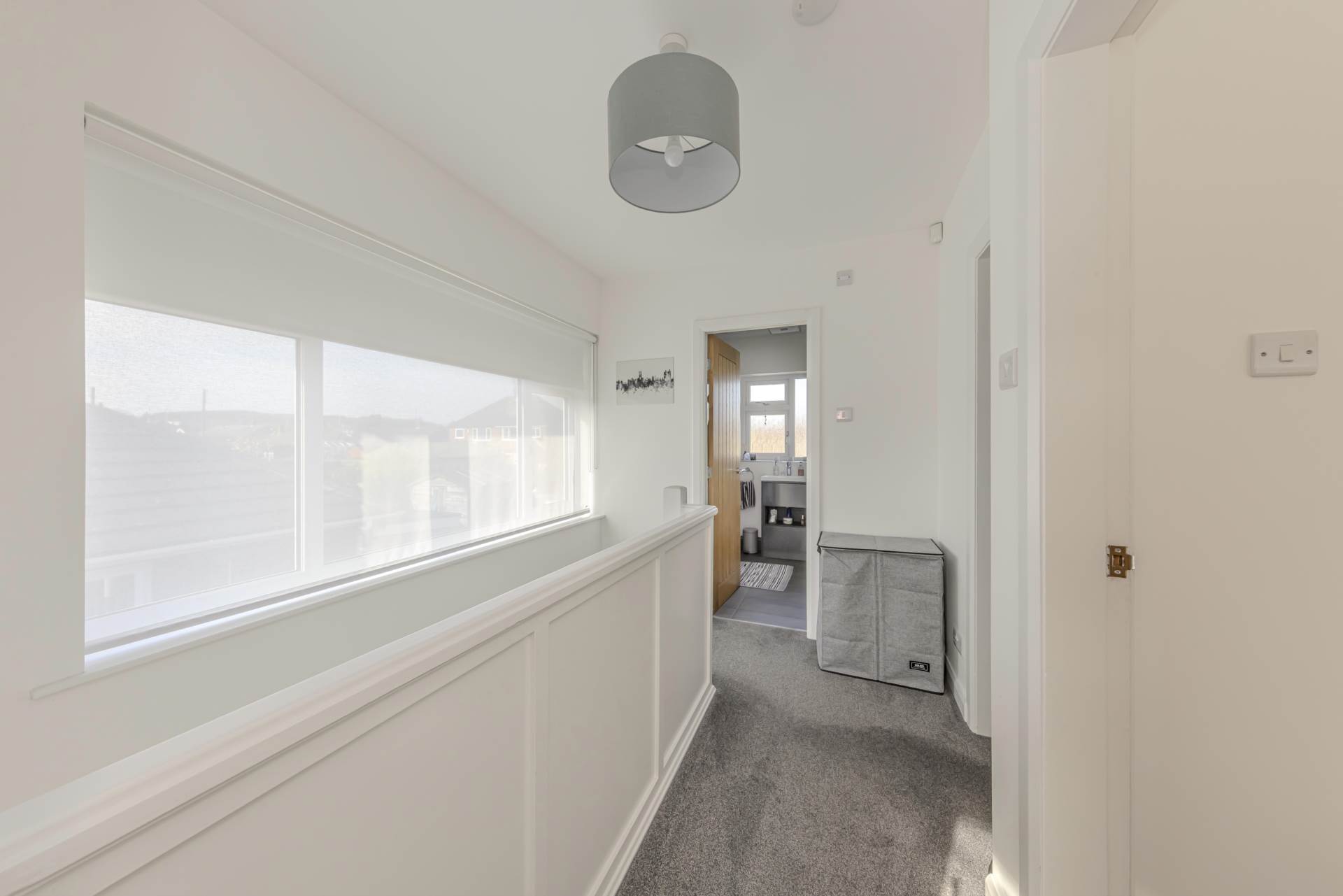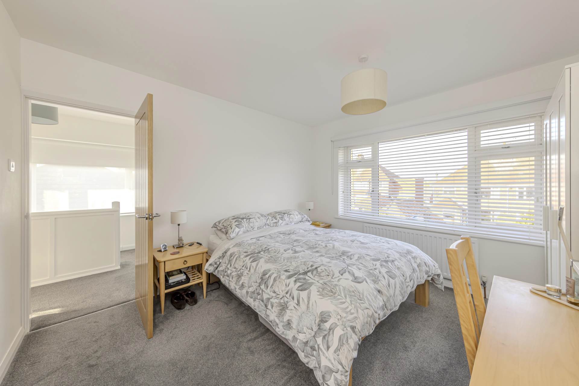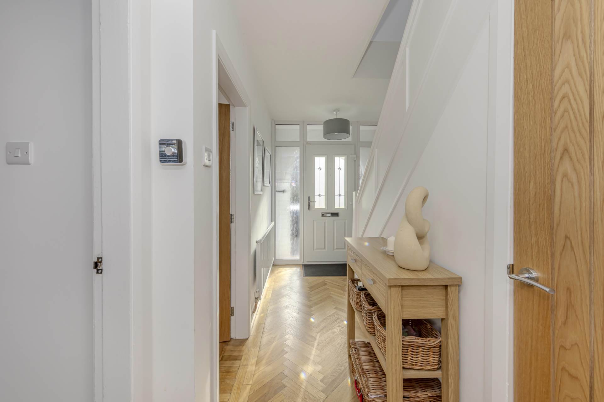 Upstairs, the property boasts three well-proportioned bedrooms, each benefiting from the same double glazing and neutral décor, creating a calm and restful atmosphere. The family bathroom has also been modernised, featuring contemporary fittings, a clean white suite, and a shower over the bath, catering perfectly to the needs of a busy household.
