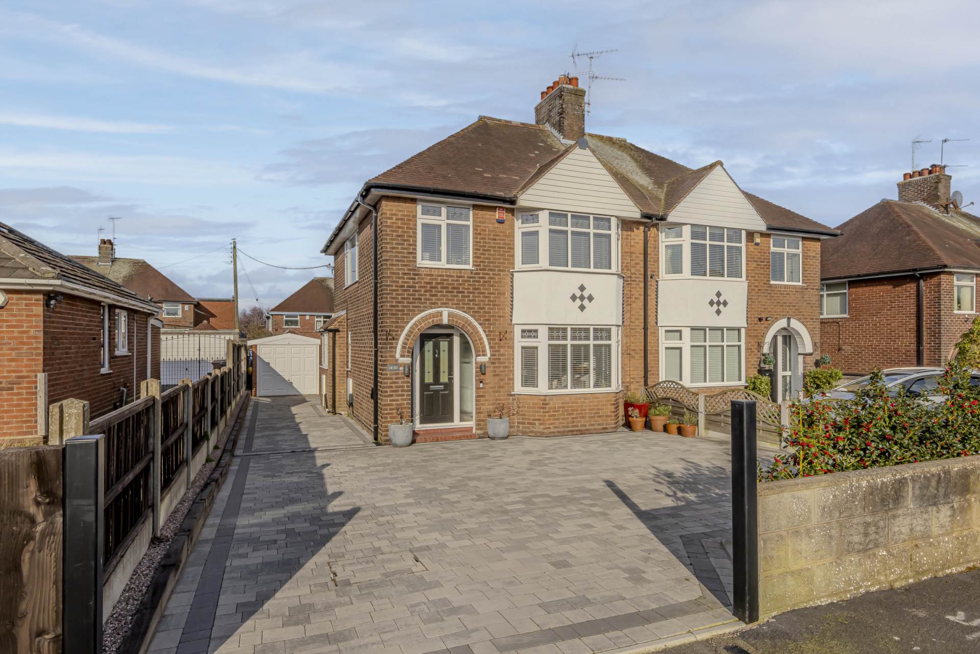 Upon arrival, you are greeted by a block-paved driveway providing ample off-road parking, complete with electric car charger point a thoughtful addition for the eco-conscious homeowner. Adjacent to the driveway is a single garage, offering secure storage or potential for conversion, subject to planning permission.