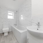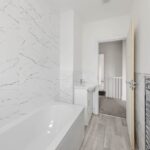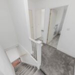 Upstairs, there are two bedrooms, both of which are generously sized and have plenty of natural light. The bathroom is also located on this floor and is fitted with a modern suite.