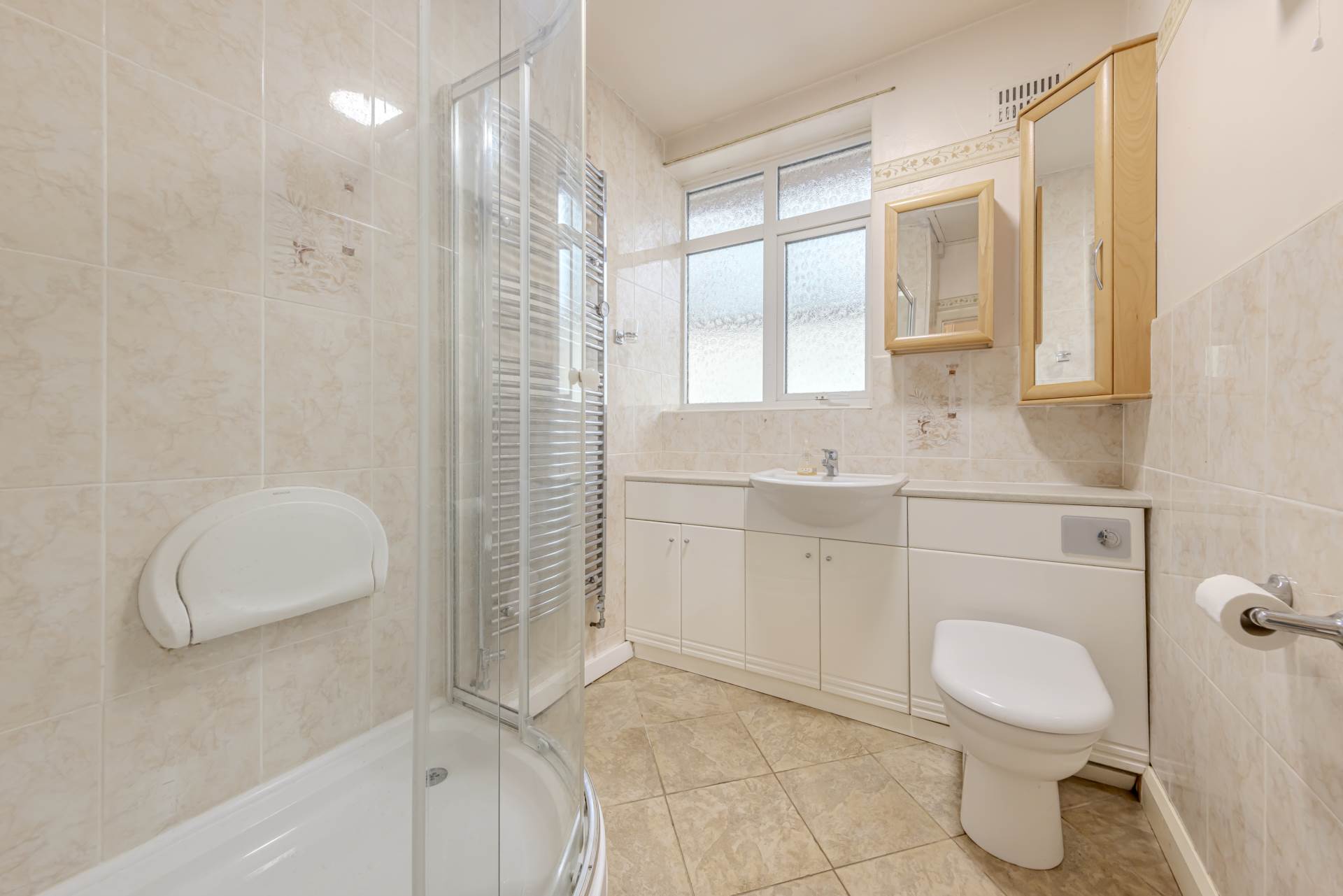One of the standout features of this property is the large conservatory, offering a bright and airy space to enjoy the views of the small private garden. The bathroom is well-appointed with a walk in shower, providing convenience for residents.