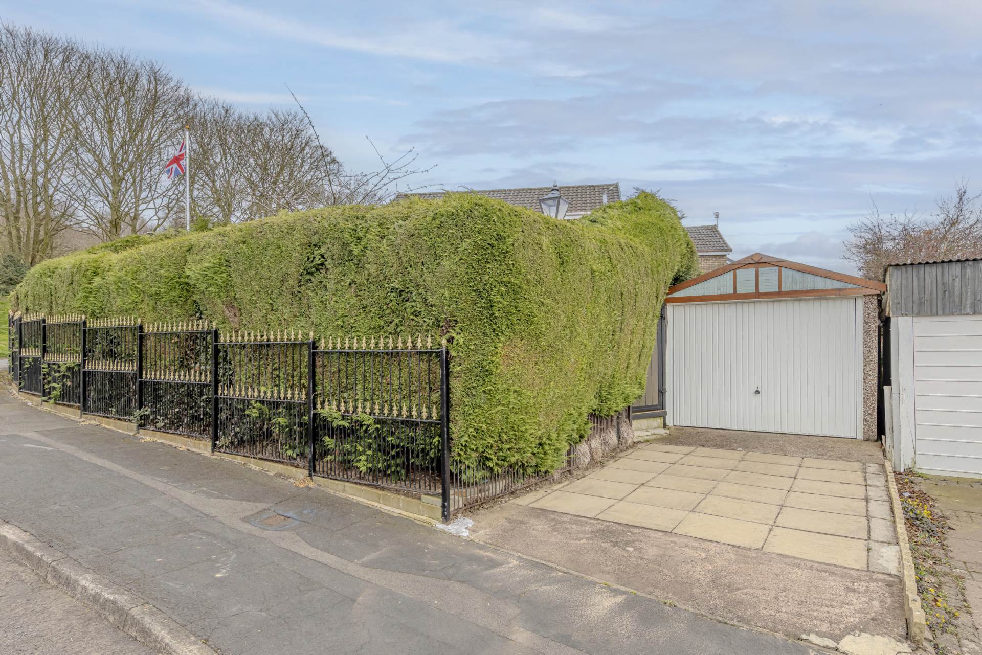 Externally, the home enjoys a generous wraparound garden, offering a high degree of privacy enhanced by CCTV coverage and secure gated access. The outdoor space is perfect for relaxing, entertaining, or gardening. A driveway provides off-road parking for multiple vehicles and leads to a single garage, offering additional storage or workshop potential.