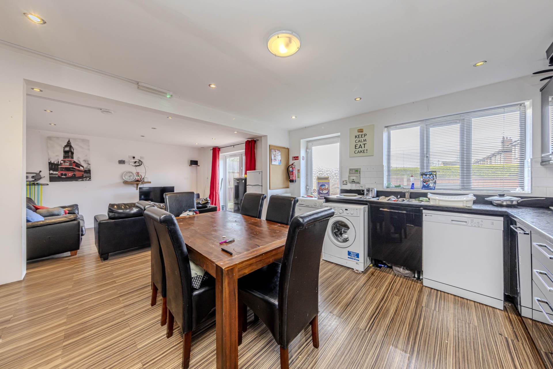 Built as a self-build in 2010 and currently operating as a six bedroom HMO round the corner from Keele University , this well-proportioned property would also work incredibly well as a family home! An entrance hallway leads to a lounge, with a separate study and en-suite shower room, as well as a further downstairs shower room. Stretching the full-width of the property to the rear is an open plan dining kitchen area, complete with high gloss units and a host of integrated appliances, with French Doors leading to the rear garden.