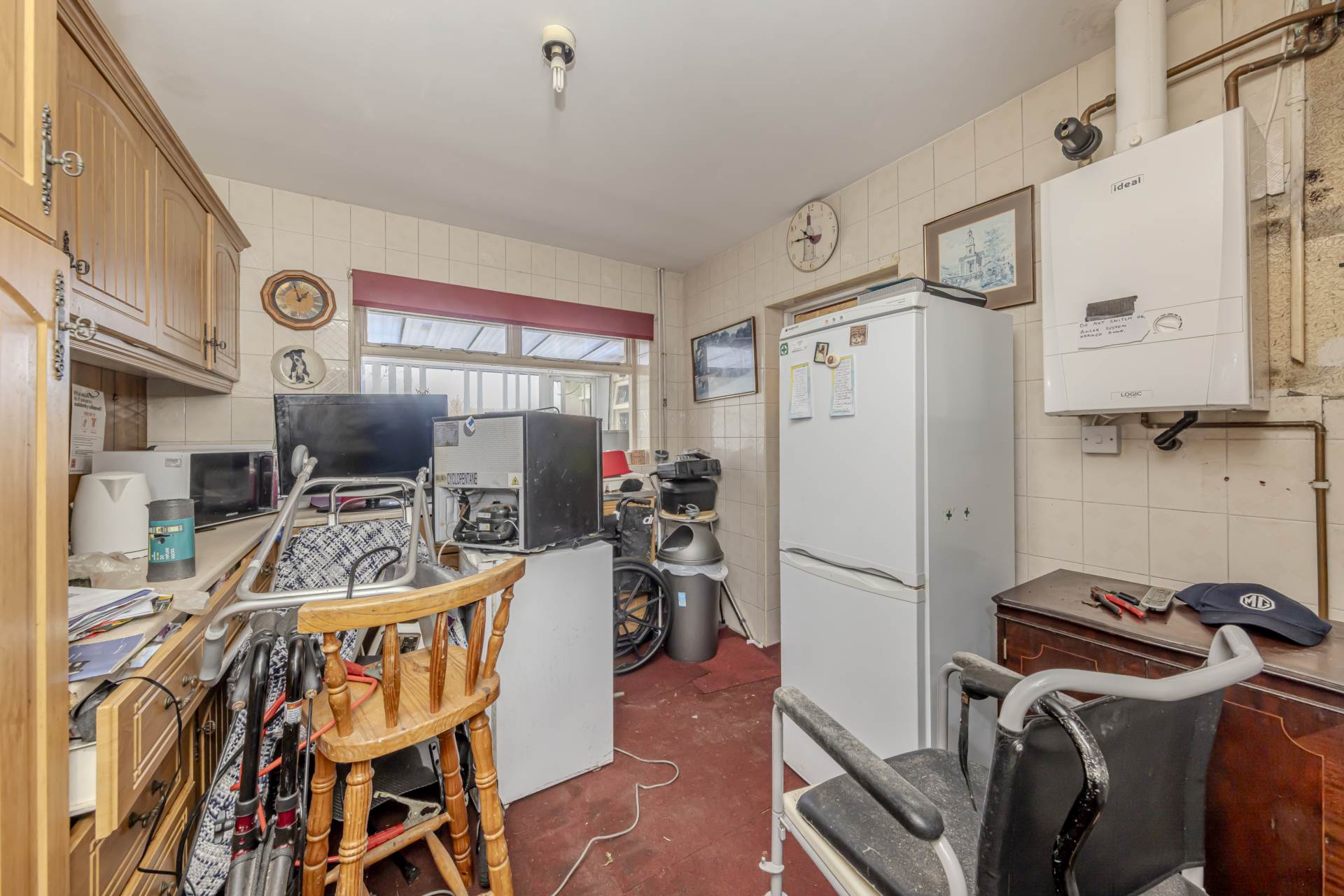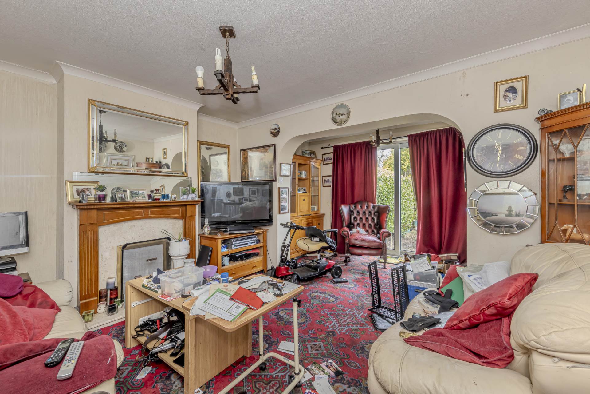 The bungalow comprises two bedrooms, a bathroom, a spacious reception room, and a kitchen, all arranged on a single level for ease and convenience. The layout is practical and offers a blank canvas for modernisation and personalisation. The property benefits from gas central heating, ensuring warmth throughout the colder months once updated. Externally, there is a garage providing secure parking or storage, along with additional off-road parking space for two vehicles, a valuable asset in this popular residential area.