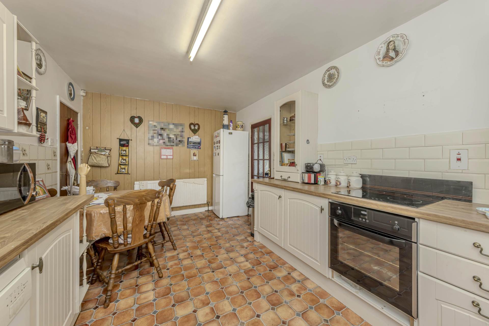 The kitchen, while in need of modernisation, is functional and offers a practical layout with plenty of storage and work surface space. Adjacent to the kitchen is a useful utility room, ideal for laundry and additional storage, helping to keep the main living areas clutter-free.
