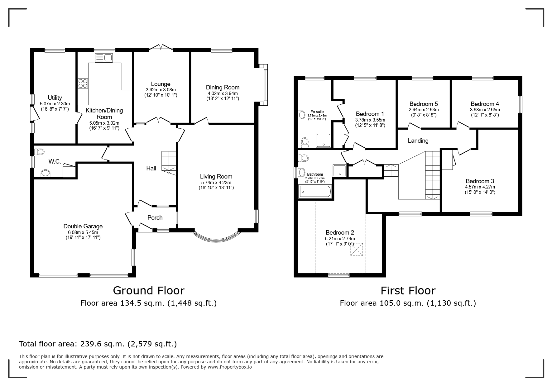Upstairs, the property features five good-sized bedrooms, providing flexibility for family members or guests. The master bedroom benefits from an en-suite bathroom, offering privacy and convenience. There is also a separate family bathroom, both of which would benefit from some updating to bring them up to a contemporary standard.