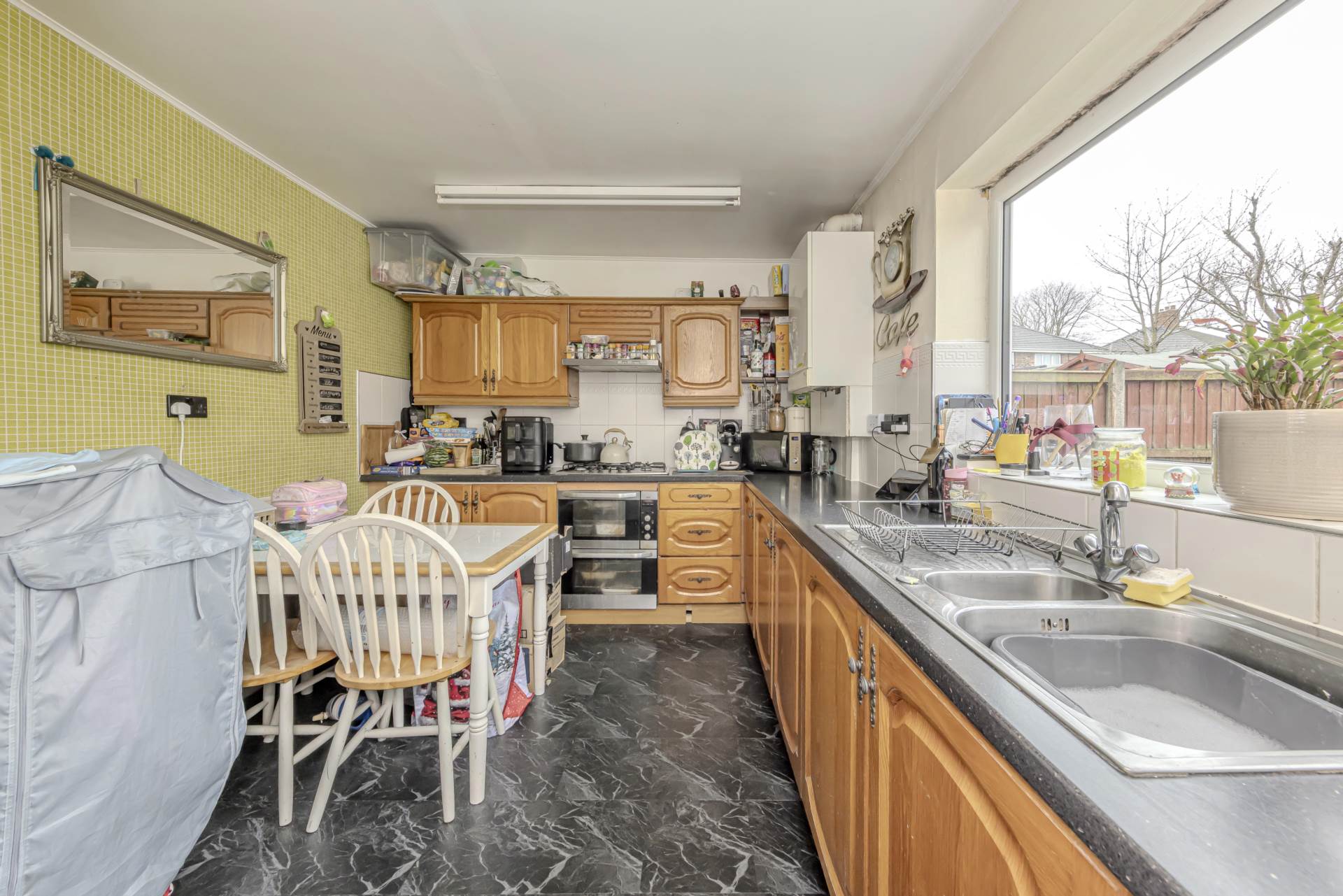 The property boasts a welcoming reception room, spacious enough to accommodate both living and dining areas, ideal for family gatherings or entertaining guests. The room benefits from ample natural light, courtesy of double-glazed windows, which also contribute to the home`s energy efficiency. The kitchen, while practical and functional, offers scope for modernisation to suit your personal taste.