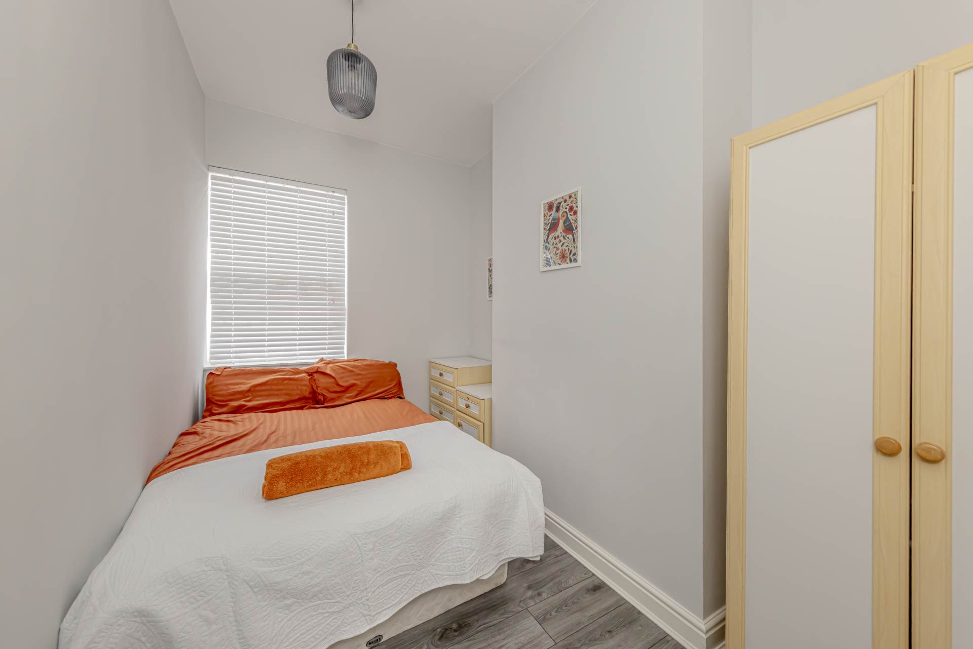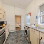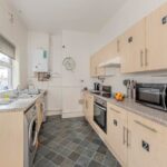 The kitchen, situated adjacent to the rear reception, is fitted with a range of units providing good storage and work surface space, ideal for preparing meals. From here, a door opens out to the private garden, a delightful outdoor space that is low maintenance yet perfect for enjoying a morning coffee or hosting summer barbecues.