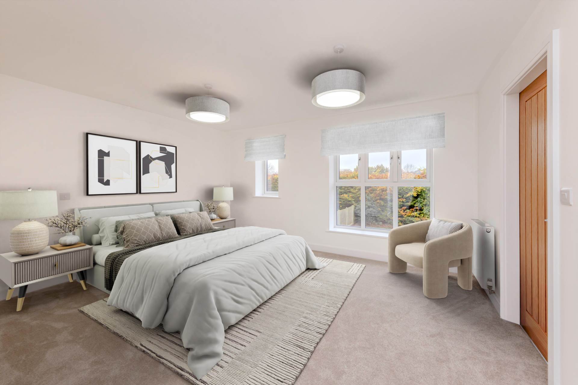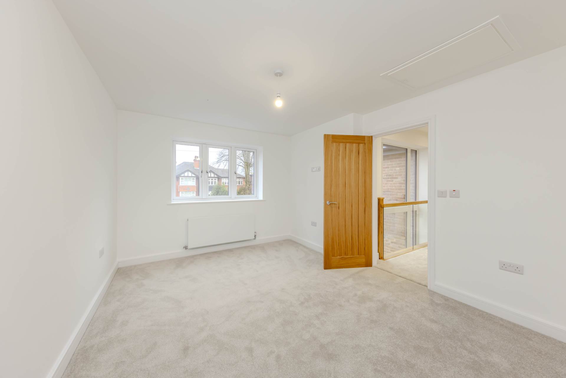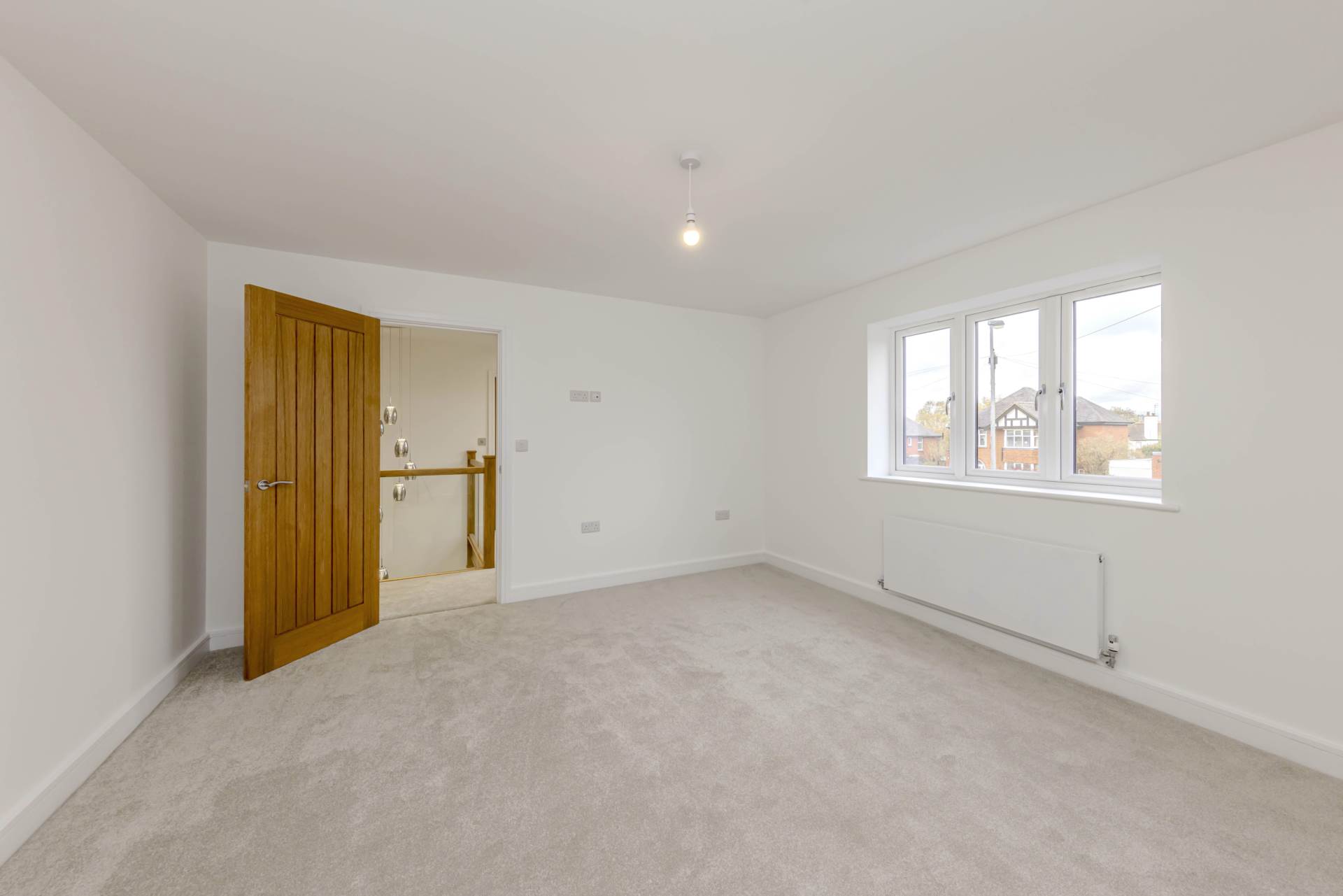 Master bedroom with feature low level window looking over the family garden, dressing room and Ensuite