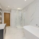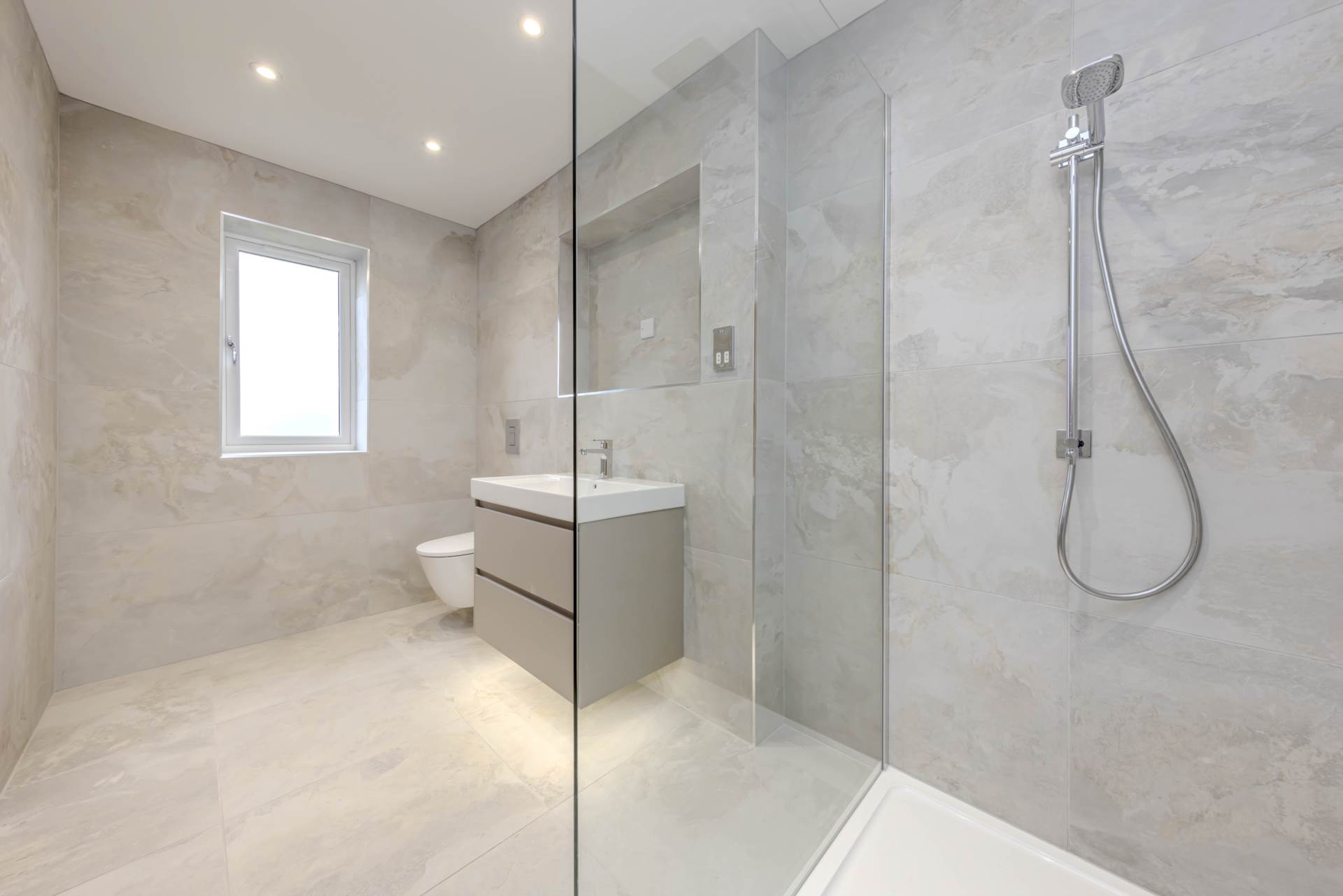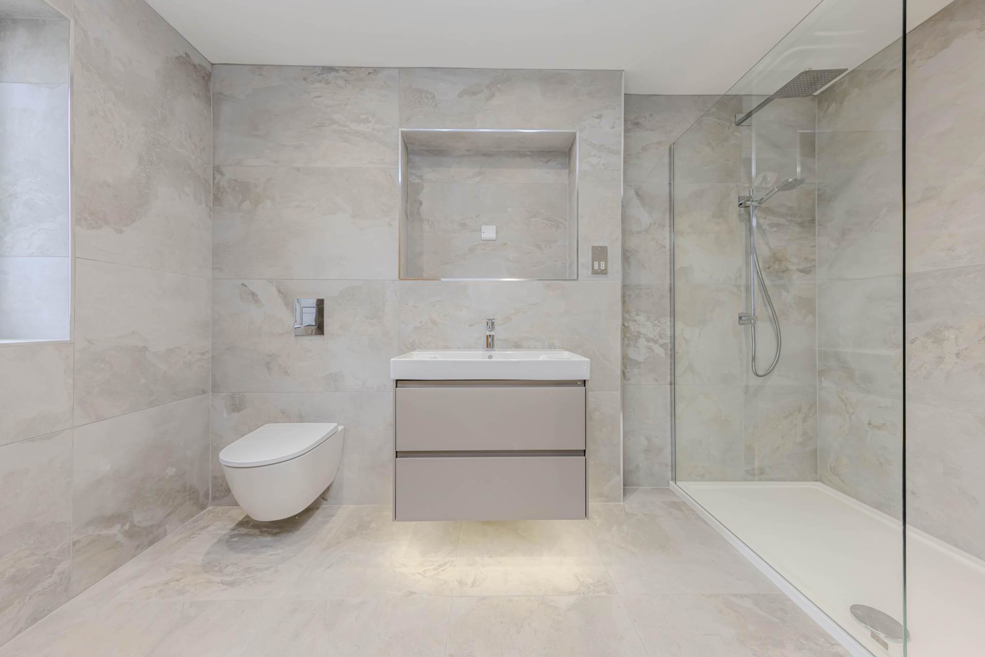- Fully tiled walls and floor