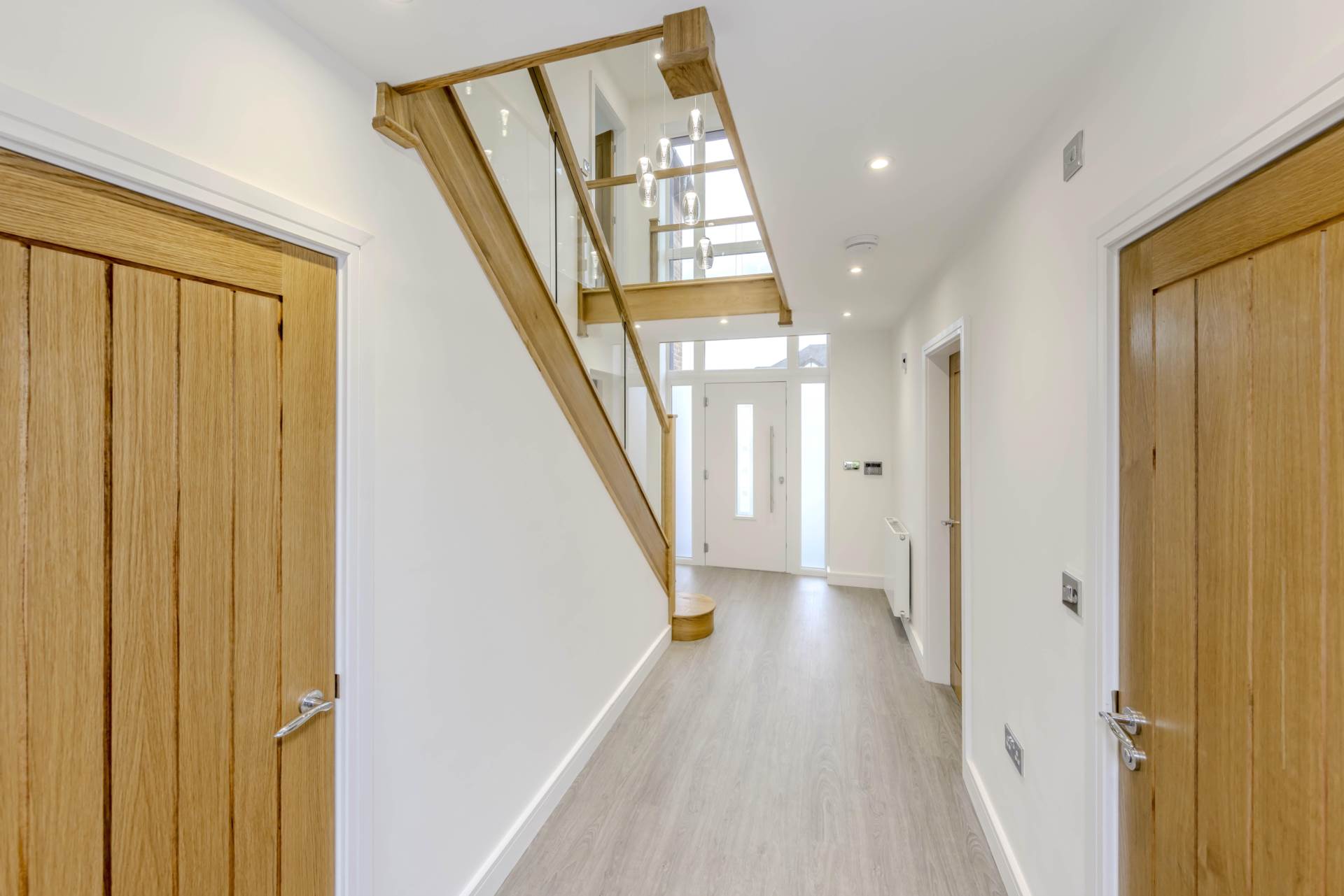 As soon as you enter your new home you are greeted by the welcoming entrance hall featuring a glorious Staircase with Oak handrail and glass balustrade