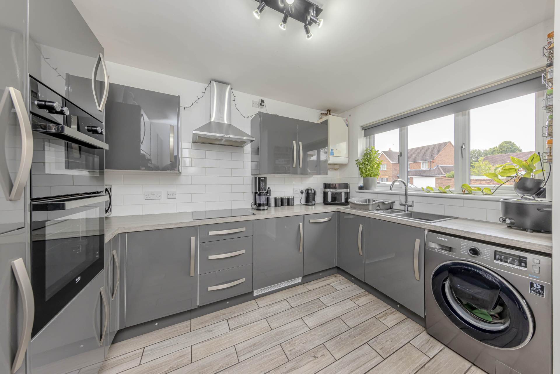 The property boasts three well-appointed bedrooms, with the master bedroom featuring an ensuite bathroom for added convenience. The two additional bedrooms are perfect for children or guests, and share a stylish family bathroom.