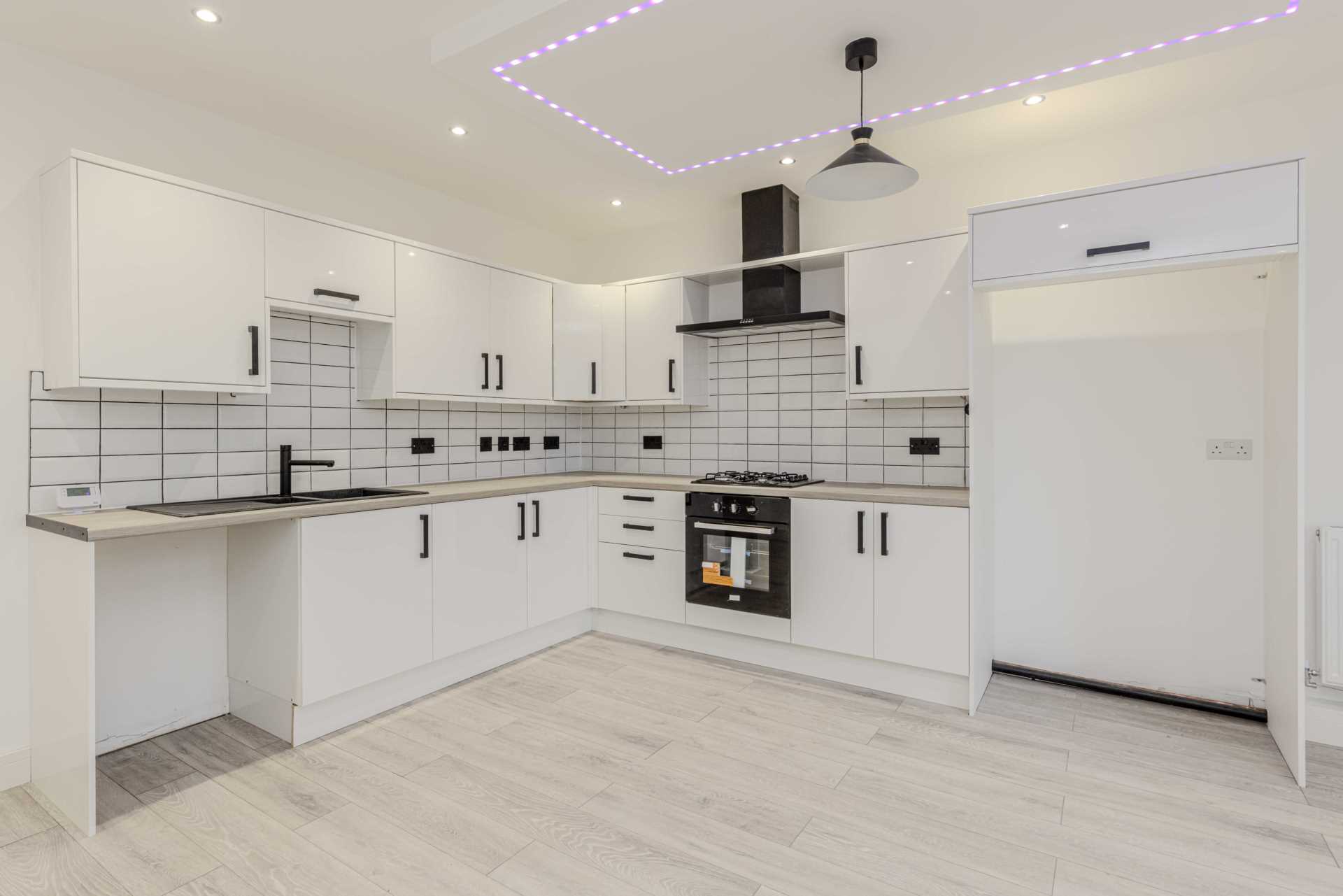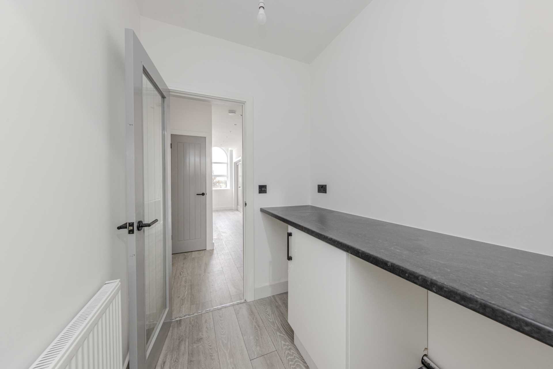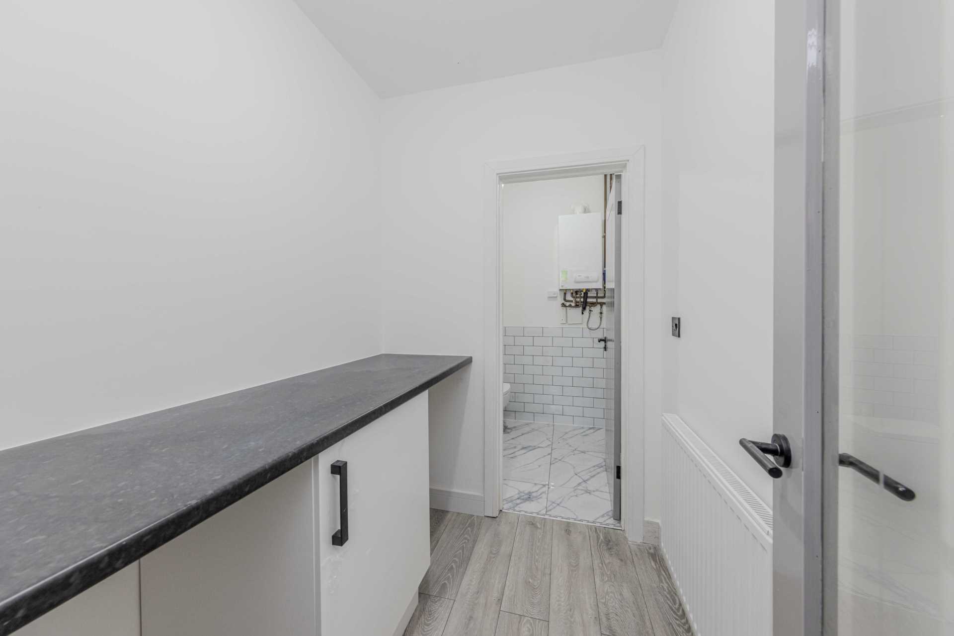 The property features a modern kitchen fully equipped with contemporary fittings, wooden cabinets, and ample storage space. The kitchen also benefits from an integrated dishwasher, an oven, a gas hob, and an extractor fan, providing you with everything you need for cooking and entertaining. There is a separate utility room that provides further storage space and houses the washing machine, dryer, and a sink.