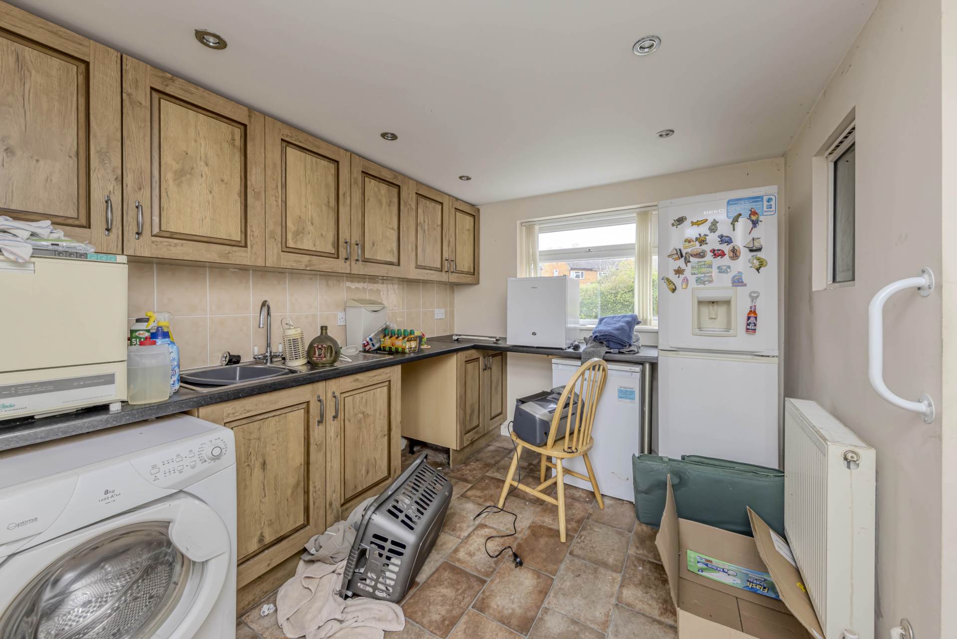The kitchen is well-equipped with ample storage space, making meal preparation a breeze. Adjacent to the kitchen is a convenient utility room with a w/c, adding to the practicality of this home.