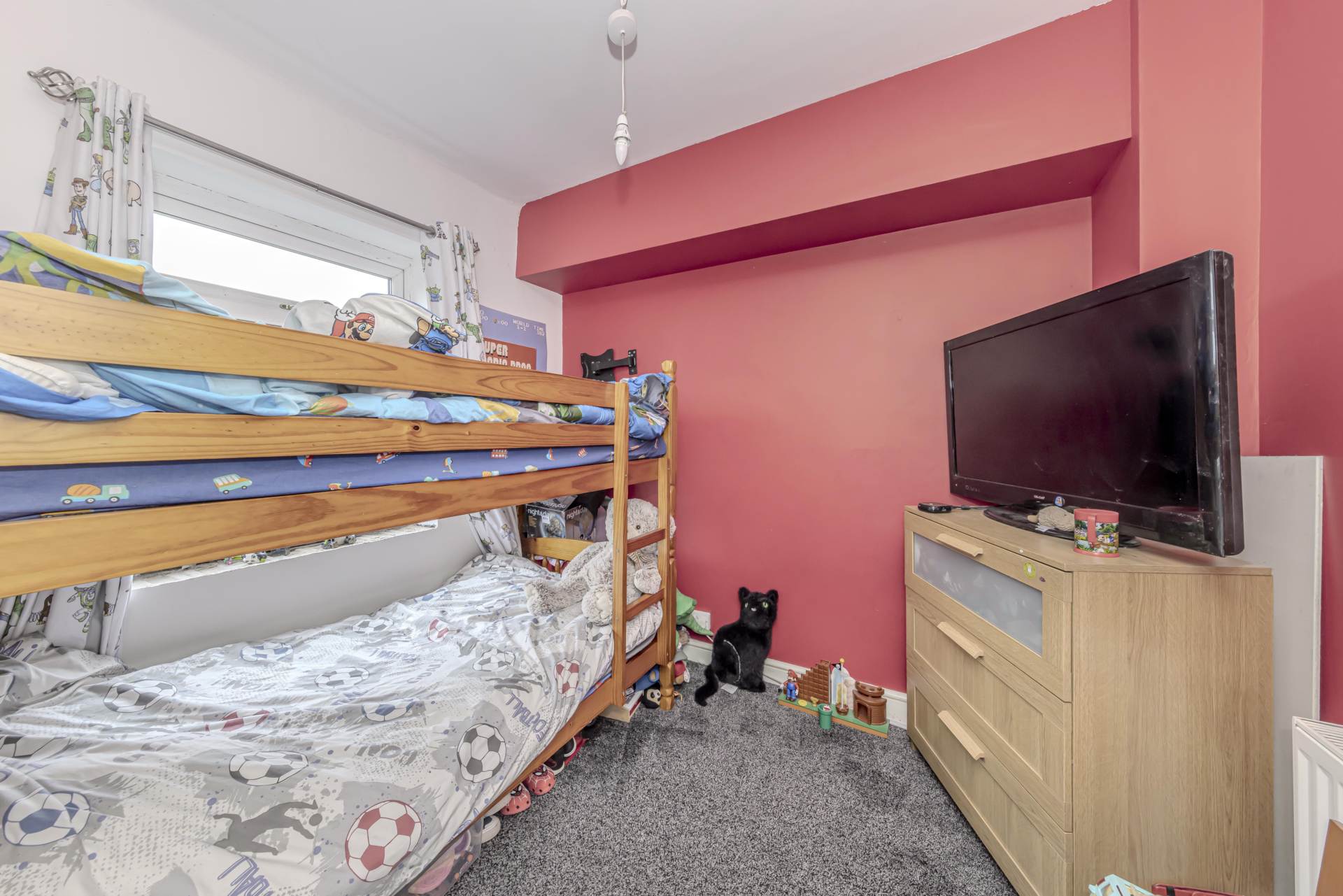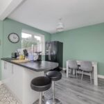 Upon entering, you are welcomed into a bright and inviting reception room, which provides a cosy yet spacious environment for relaxing or entertaining guests. The neutral décor and large window allow natural light to flood the space, creating a warm and welcoming atmosphere. The room flows seamlessly into the open-plan kitchen diner, a real highlight of the property. This modern kitchen is well-equipped with ample storage and work surfaces, perfect for preparing meals and hosting family dinners. The dining area comfortably accommodates a table and chairs, making it a sociable space to enjoy everyday meals or entertain friends.