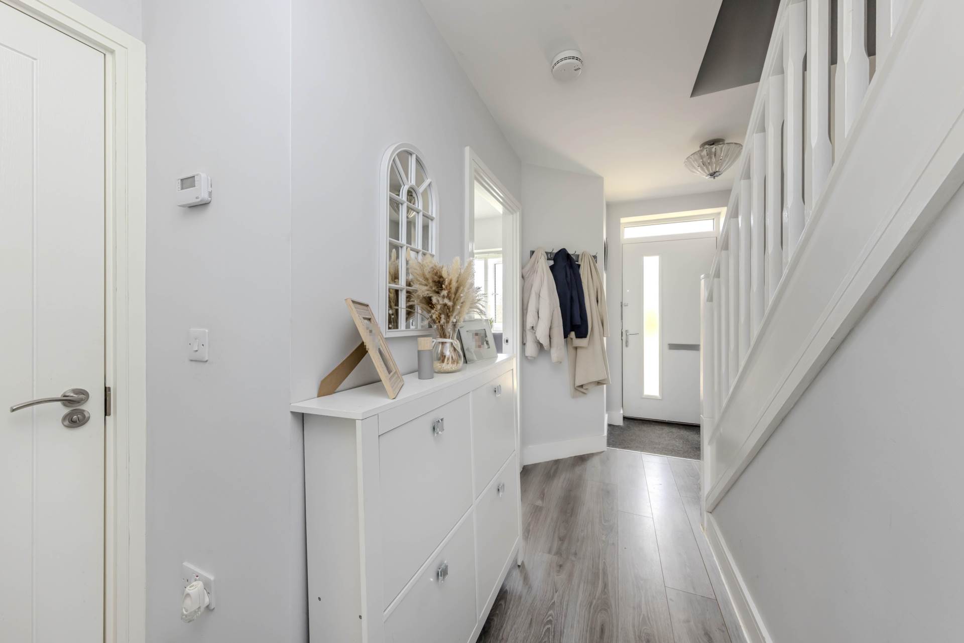The first floor of the property comprises of two generously sized bedrooms, both with ample storage space. The modern bathroom is fully fitted with a bath, shower, and WC. The first floor of the property is also home to the master bedroom, which is spacious and bright, with an en-suite shower room.