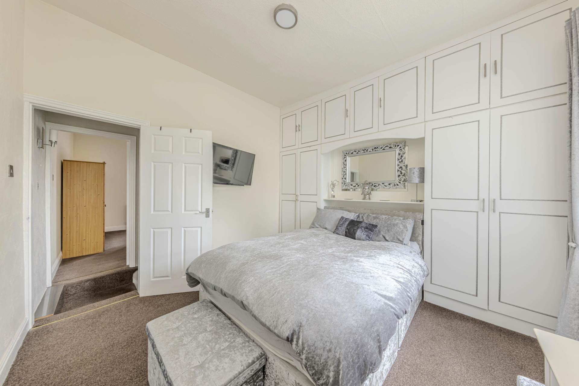 Upstairs, you will find two well-proportioned bedrooms, both benefiting from double glazed windows and neutral decor. The master bedroom is spacious enough to accommodate a double bed and additional furniture, while the second bedroom is ideal for use as a guest room or home office.